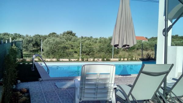 Dva dobro opremljen z udobnimi apartmaji. Eno stanovanje je na tleh, in drugi stoji na tleh nove stanovanjske zgradbe. Vsak apartma ima kuhinjo (pomivalni stroj in pečico), dnevna soba (SAT TV, internet, WiFi), 2 spalnici, 2 kopalnici (vključno z 1 pralni stroj) in velik balkon s pogledom na morje. Deljena vsebine: za peko na žaru, od leta 2016, gostje imajo na razpolago (zunaj) bazen v izmeri 8mx4m s pogledom na sosednjo oljčni nasad. Apartmaji se nahajajo na mirni lokaciji v Sukošanu, obdan z zelenjem in gozdom, v bližini morja Dalmmacija, v katerem se je na plaži in restavracija.