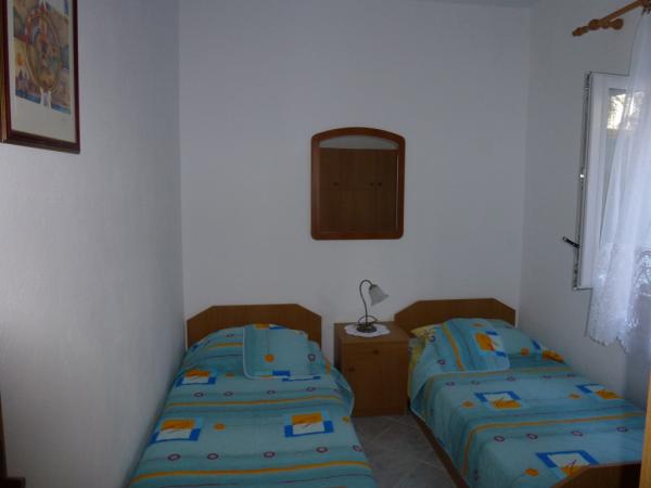Hiša je zgrajena iz kamna in obdan z zelenjem in majhen sadovnjak. Nahaja se na mirni lokaciji in je idealna za družine z otroki in vse tiste, ki ljubi mir. Apartmaji so dobro opremljeni. Parkirišče za goste je na voljo. Grill se nahaja na dvorišču. V biziini, le še nekaj korakov, je prodnata in peščena plaža. Lahko najamete plaža stoli in senčniki. Na približno enaki razdalji je trgovina s hrano in igrišča za tenis. Objekt se nahaja deset minut hoje do centra. Za vaš avto si lahko pozabi, ker vseh krajev, ki jih lahko doseže v času dveh do deset minut.