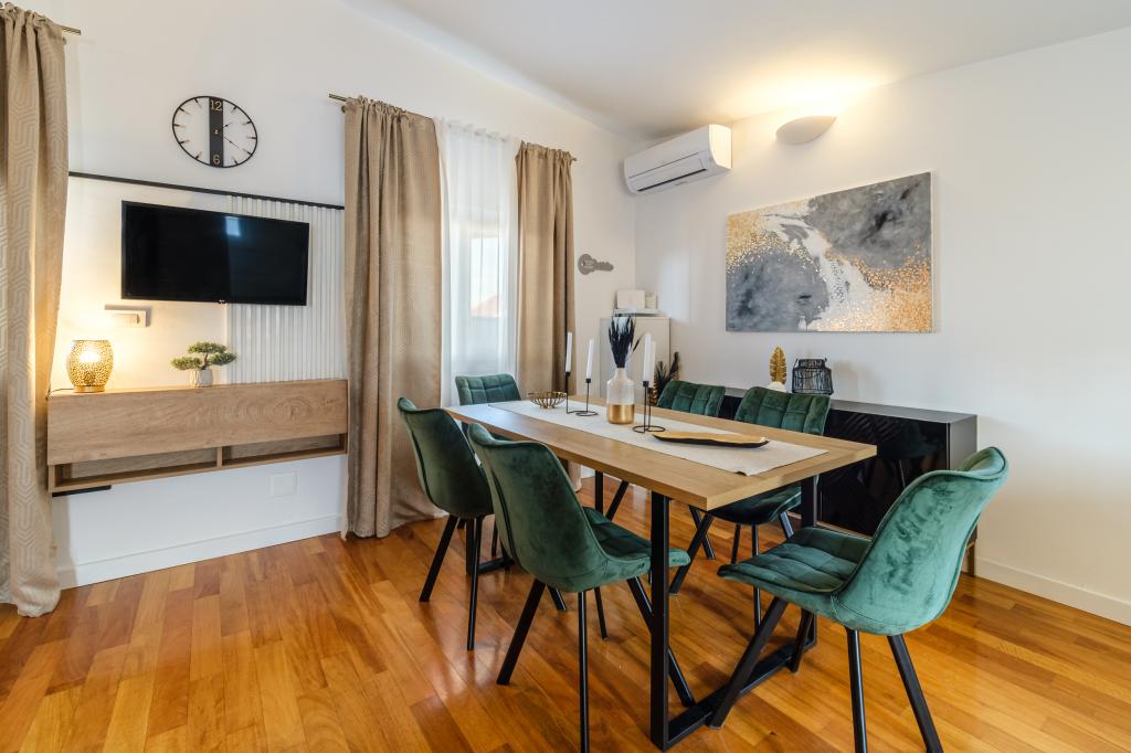Turistična taksa je vključena v ceno.Z najemno nastanitvijo nudimo pijačo dobrodošlice, kratke informacije o vsebini mesta, šolo potapljanja, jadranje na deski, jet-ski, najem čolna in omogočili smo vsakemu gostu brezplačno uporabo kolesa. V bližini kraja, 5 min od centra, je naravni park, ki vključuje različne športne aktivnosti (odbojka, košarka, bowling), obisk konobe in obisk parka z možnostjo obiska domačih živali.