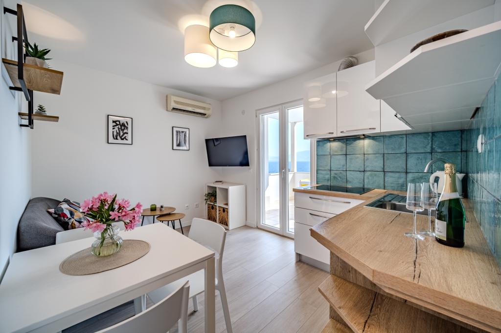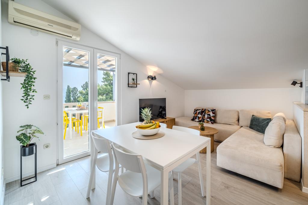 Lep in čist apartma s čudovitim razgledom. Družabni in prijazni gostitelji. Za vsako priporočilo. Center je blizu, ena od mnogih plaž takoj, ko pridete dol iz apartmaja. S kolesi, ki so na voljo za uporabo, se lahko pripeljete tudi do bolj oddaljenih zalivov.Žal nam je, da moramo kmalu oditi in se zagotovo še vrnemo.