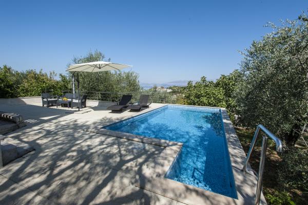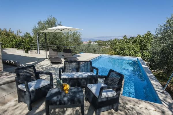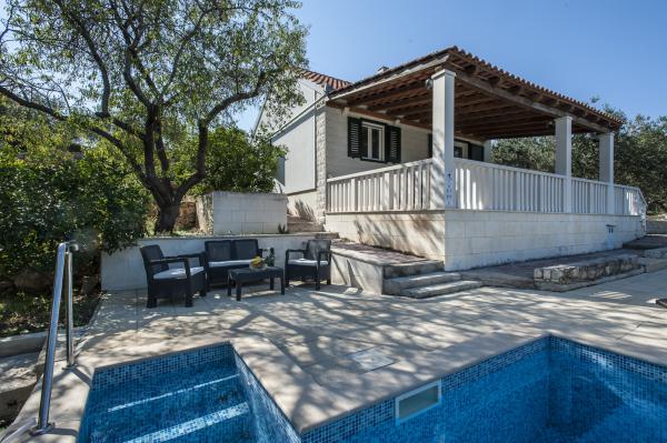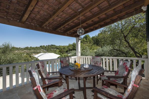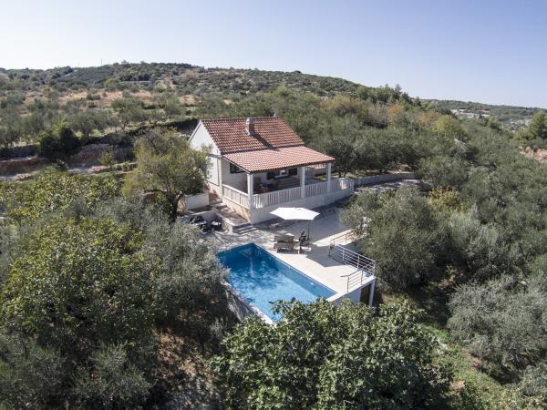 Popolnoma opremljeno hišo otok, obdan z oljkami. Z velika pokrita terasa ponuja panoramski pogled na mesto Bol, morje in mesto Split. Pokrita terasa ima vrtno pohištvo Na zahodni strani je terasa z žarom. Hiša ima prostor za dve parkirni mesti. Hiša ima 2 spalnici. V kuhinji, dnevna soba ima kavč posteljo. V kuhinji je pomivalni stroj. Kopalnica ima tuš, WC, umivalnik in pralni stroj. Postavite poln peščenih plaž, ki jih je mogoče doseči z avtomobilom. V vasi so različne gostinske in športne objekte. Ljubitelji kolesarjenja lahko uživajo 25 kolesarske steze otoka.