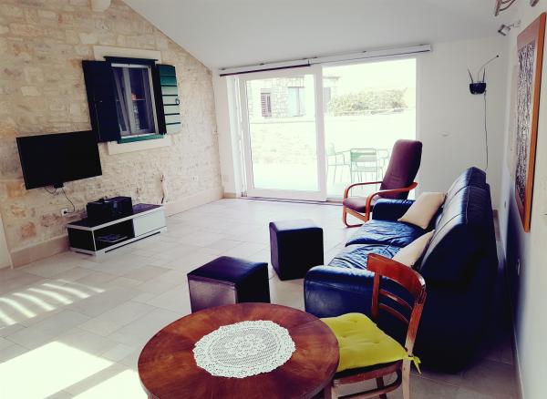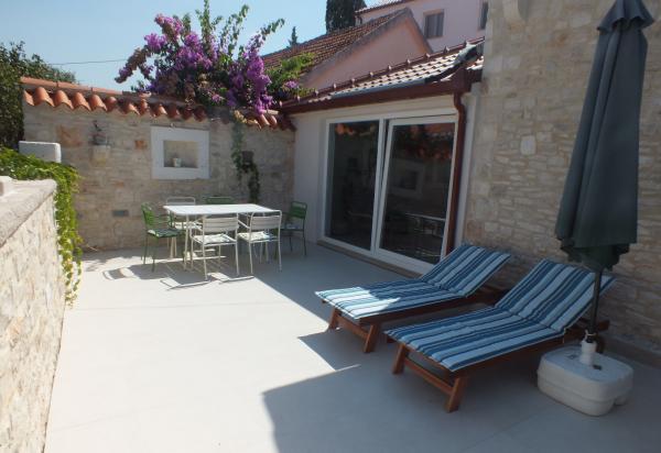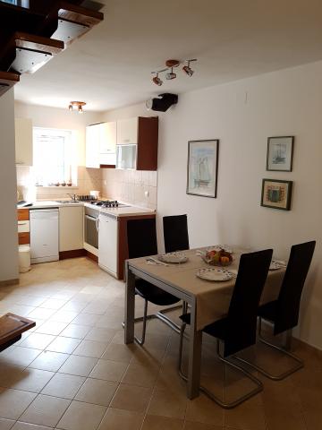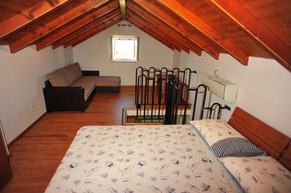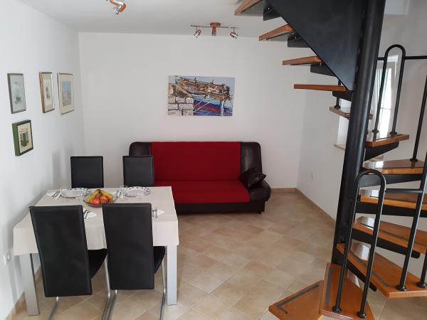 Hiša Mihaela, 50 m od plaže, v mirnem delu mesta. Zanimivo oblikovan in opremljen prostor, velikosti približno 75 m2 teraso. Spalnica se nahaja v prvem nadstropju, s pogledom na morje. Ima eno zakonsko posteljo in eno enojno posteljo. Na pritličju je opremljena kuhinja z veliko jedilnico, ki je vrata povezana z veliko dnevno sobo z izhodom na intimno teraso. Kopalnica ima tuš / kad.