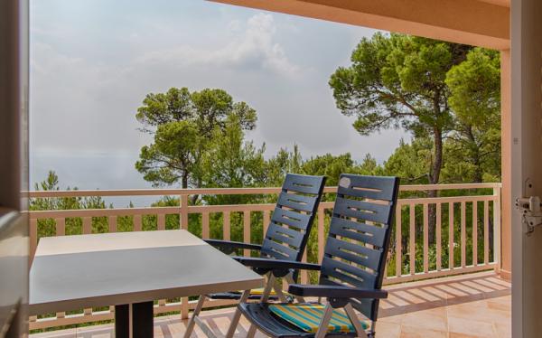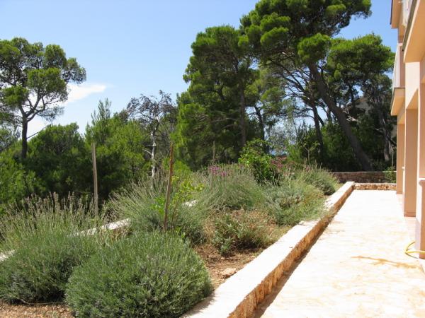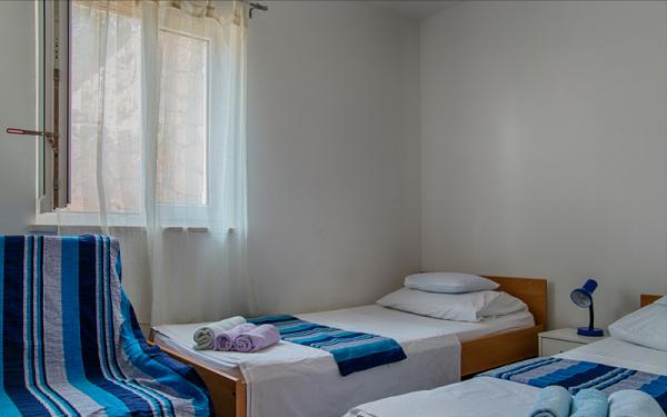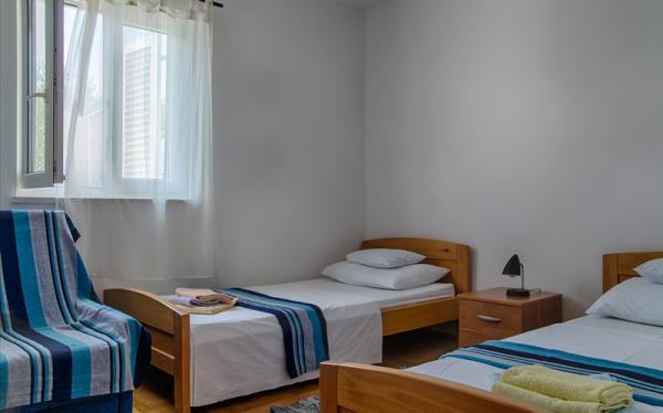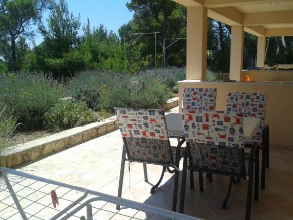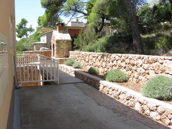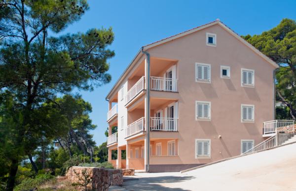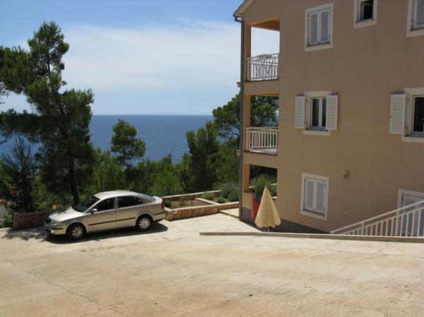 Apartmaji se nahajajo v družinski hiši v mirnem naselju na južni strani otoka, Sveta Nedilja. Okoli hiše so borovci, in pred hišo je zasebni vrt z mediteranskim rastlinjem (sivka, limona, žajbelj, rožmarin, Bougainvillea, slika ...). Hiša ima tri etaže. Ob hiši je tudi eno parkirno mesto za vsako stanovanje. Vsak apartma ima pogled na morje. Vsak apartma ima ločeno spalnico, kopalnico, dnevno sobo s kuhinjo in teraso s pogledom na morje.