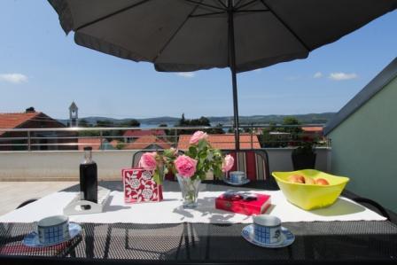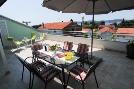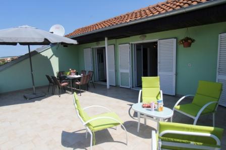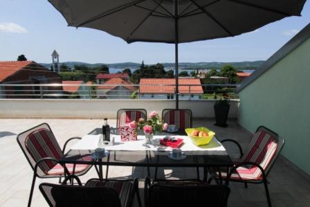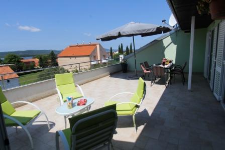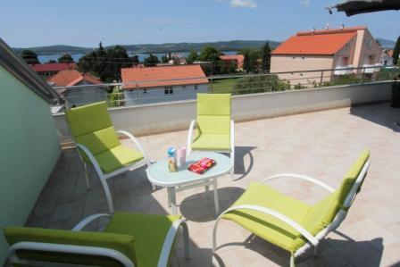 Dve sobno stanovanje z veliko teraso in omamljanje poglede v središču Sveti Petar skupno površino 120 m2 (65 m2 površine ohišnega dela garniture z, 55m2 Površina terase-balkona). Stanovanje z dvema spalnicama in ima dve kopalnici, kuhinjo, jedilnico in dnevno sobo (vse v enem), dvorana (vhod v aprtman). Apartma se nahaja v družinski hiši, in daje eno nadstropje (eno nadstropje) z ločenim vhodom v stanovanje. Parkirišče je na mestu, kot tudi žar (žar), veliko dvorišče in trampolin za otroke. Plaža, morje, Riva, restavracije, lekarna, pošta, igrišče, sprehajalne poti .... vse se nahaja le nekaj minut hoje od apartmaja.
