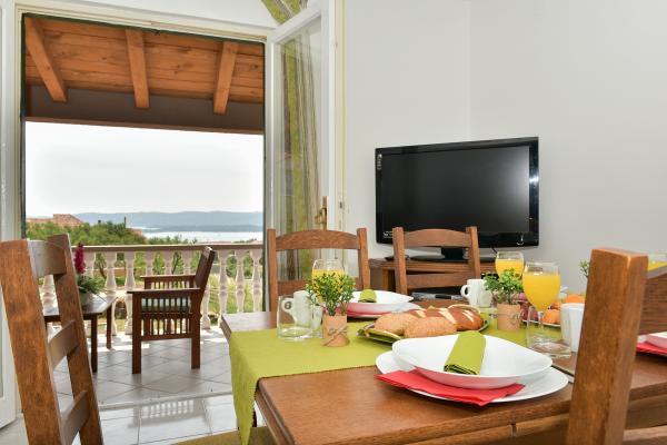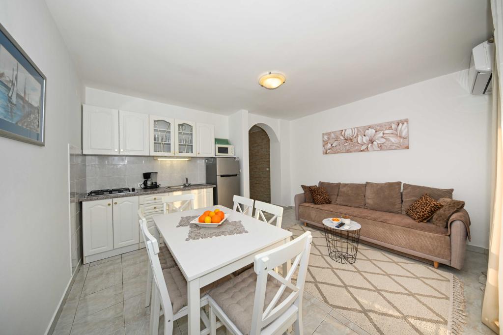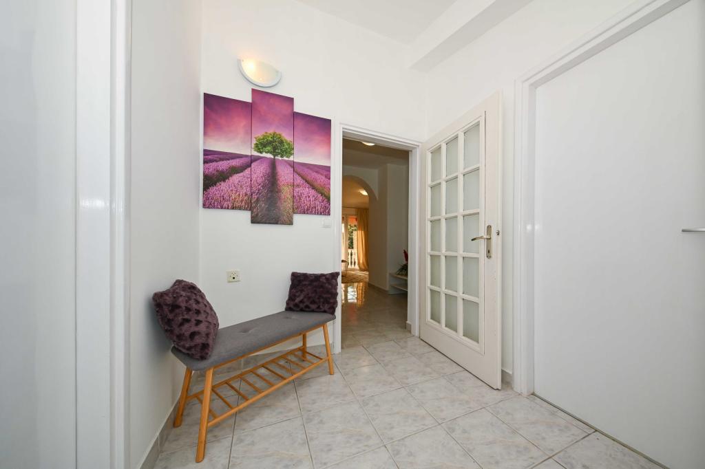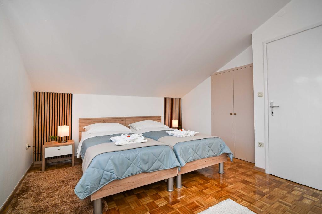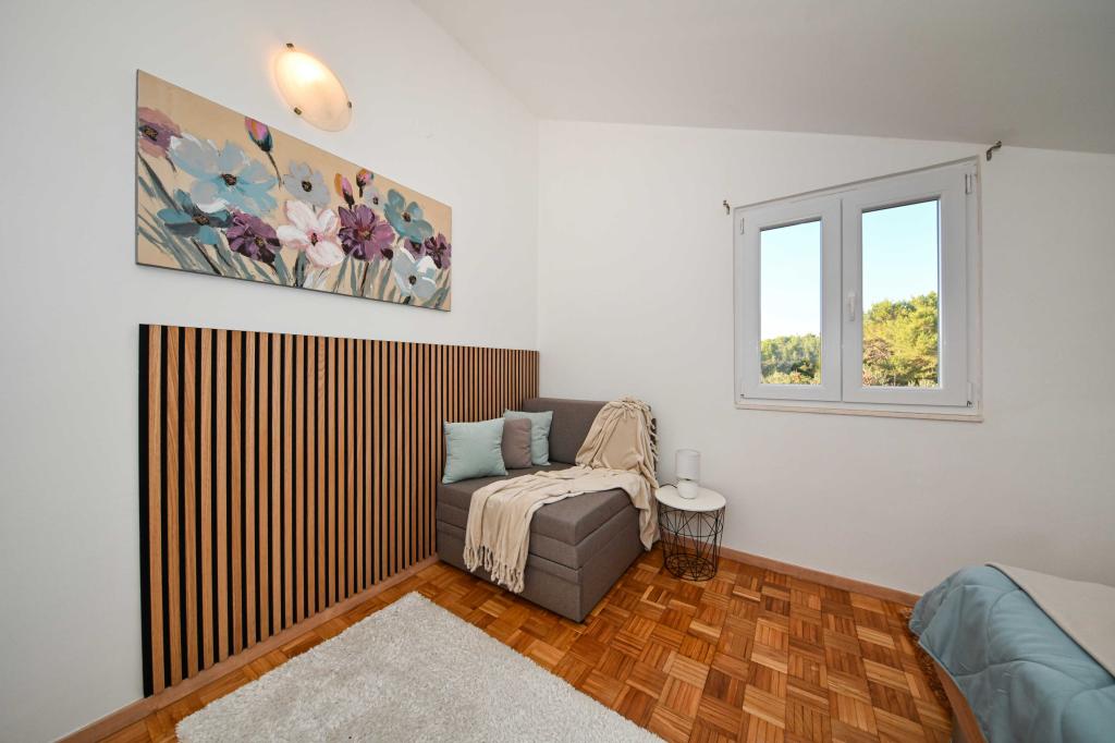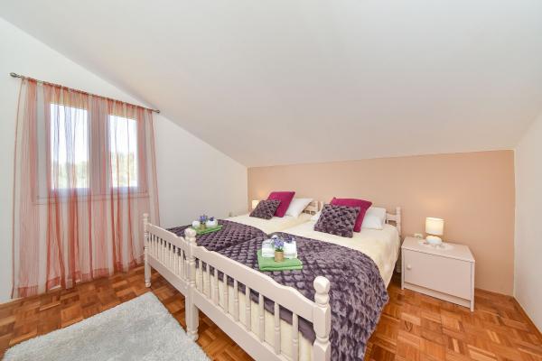 Dajte nam priložnost in si nepozabne počitnice boste doživeli samo pri nas. V naših apartmajih vrhunsko urejenih v bližini borovega gozda in morja bo vaš dopust popoln. Promenada in bližnji razgledni, kolesarske poti, v bližini Vransko jezero Naravni park, in Nacionalni parki Kornati in slapovi Krke, starodavna mesta Zadra in Šibenika, bo zagotovo izpolnila pričakovanja tudi najbolj zahtevne goste. Naš kompleks je velikosti 2500m2, obdan z oljkami in borovim gozdom. Iz dvorišča je lep pogled na morje Pašman Channel. V kompleksu je: • Družinska hiša, kjer sta dva ločena apartmaja (za 4 in 6 oseb). • Apartmaji so opremljeni s klimatsko napravo, TV, Wi-Fi in terase s pogledom na bazen morje in bazen. • Bazen: Ob hiši je bazen z lepo okolico in ležalniki • Bazen se nahaja, obstajata dve kopalnici s tušem in dve kopalnici, ločen prostor za pranje perila, ki je Opremjen s pralnim strojem in sušilni