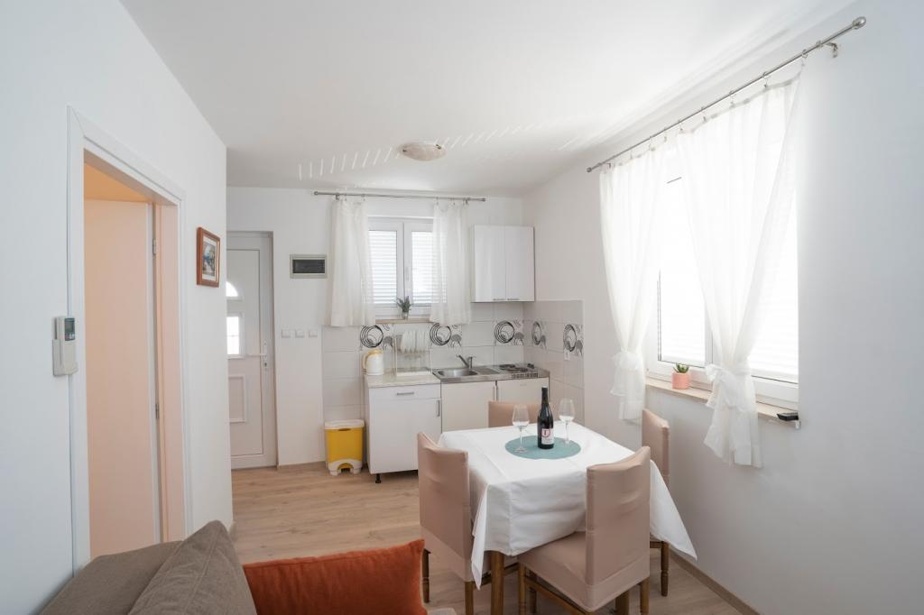 Apartmaji se nahajajo v bližini peščene plaže 200 m, od centra 400m v mirnem okolju. Luksuzno opremljena TV, Wi-Fi, spalnica, kopalnica. Opremljena kuhinja, dnevna soba. 30 m2 površine. Klimatizirano. Terasa 15m2 s poletnim pohištvom. Parkirišče