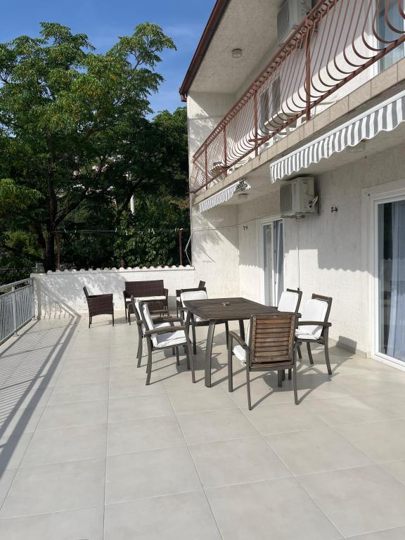 Dobrodošli v naših udobnih in prostornih apartmajih, ki se nahajajo v mirnem in prijetnem mestecu Sveti Juraj, blizu Senja. Naši apartmaji vam nudijo mirno bivanje v bližini čudovitega Jadranskega morja. Oddaljenost od plaže in centra mesta je 150 metrov. Vsak apartma lahko sprejme do 7 oseb. Vsak apartma ima 3 spalnice z lastnimi kopalnicami, dnevno sobo in popolnoma opremljeno kuhinjo. Apartmaji so klimatizirani. Ker boste veliko časa preživeli zunaj, vam naš dom ponuja velik prostor za sprostitev s primerno vrtno garnituro. Če želite pripraviti sproščujočo večerjo zunaj, je na voljo tudi prostor z opremo za peko na žaru. Na dvorišču je veliko zasebno parkirišče in vaši avtomobili so varni. Naši apartmaji so idealni za miren družinski dopust z otroki ali skupino prijateljev.