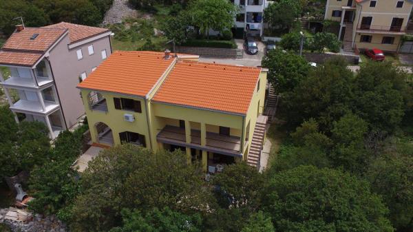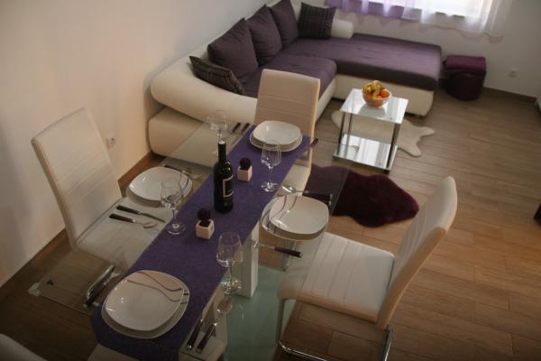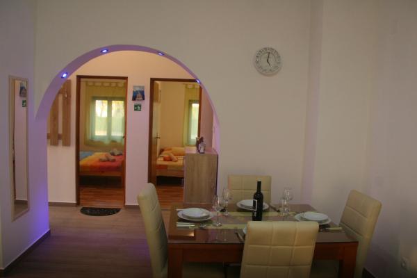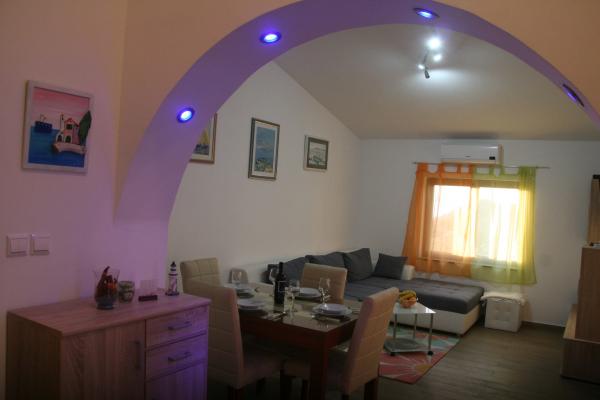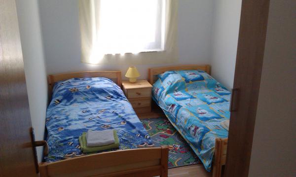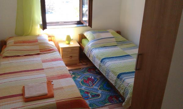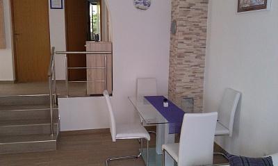 Apartmaji se nahajajo v povsem mirnem delu mesta, 5 minut hoje do centra, 7 minut do plaže. V celotni naravi, kar je idealno za mirne počitnice in otroške igre. Vsak apartma je sodobna, ki se nahaja na ločenem nadstropju in ima lasten vhod. Vsak ima 2 spalnici, 1 kopalnica, opremljena kuhinja, velika dnevna soba s kavčem za dodatna 2 osebi in teraso / balkon s pogledom na morje. Na vrtu je montažni bazen in trampolin - brezplačno uporabo. Apartmaji so opremljeni s klimatsko napravo, stane 5 € na dan uporabe. Na razpolago žar. Parkiranje je brezplačno. Pralni stroj je na voljo tudi prva pranje je brezplačno, po vsakem se zaračuna 5 €. Gostitelj je na voljo v času vašega bivanja. Pomoč z žarom in žar je na voljo na zahtevo.