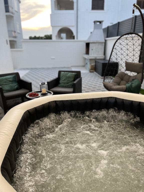 Novi luksuzni apartmaji s štirimi zvezdicami se nahajajo v Svetem Petru na moru, med Biogradom na moru in Zadrom. Apartmaji se nahajajo v prvi vrsti do morja, 40 metrov od prodnate plaže. Vsi apartmaji so klimatizirani in zvočno izolirani. Na vseh oknih in balkonskih vratih so komarniki. Vhodna vrata stanovanja so protipožarna in protivlomna, LCD TV z ravnim zaslonom s satelitskimi programi, brezplačen WI-FI. Z vašega balkona lahko uživate v čudovitem pogledu na morje in otok ljubezni - Galešnjak. Ponudba vključuje brezplačno zasebno parkirišče in žar za hišo ter jacuzzi hidromasažni bazen, ki zagotavlja popolno vsebino našega objekta. Skratka, apartmaji Štiri zvezdice vam nudijo popoln oddih in pobeg od živahnega življenja. Če ste željni adrenalinske zabave, vam je na voljo zabavni vodni park Dalmaland v Biogradu na moru (11 km). V bližini je mesto Zadar (17 km), ki je polno zgodovinskih vsebin. No, odločitev je na tebi, mi pa te pričakujemo :)
