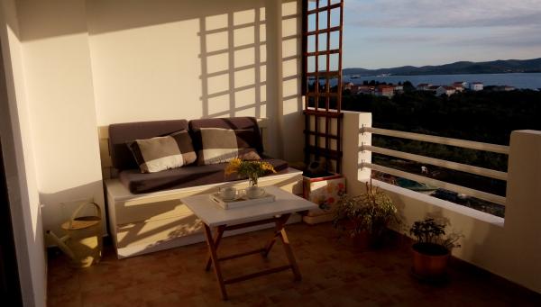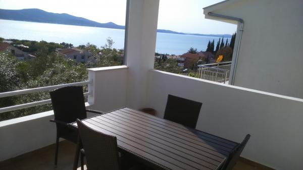 Stanovanje v pritličju z izhodom na vrt, teraso na vhodu in drugo vrtno teraso s čudovitim pogledom na morje in otok Pašman. Urejeno, domačini so zelo prijazni ljudje, oddaljenost od plaže je le nekaj minut hoje. Popolnoma opremljena kuhinja, klimatska naprava deluje veliko počitka.