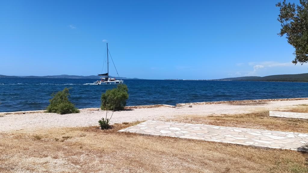 Večkrat sem bival tukaj, mirna lokacija, tik ob morju, lasten pomol, možnost priveza čolna, boja z velikim betonskim blokom, zelo prijetni lastniki, restavracija v sosednjem kampu, možnost parkiranja s prikolico, velik apartma s teraso in pogledom na Pásmo, Ugljan, zjutraj je morje kot olje, prijetno kopanje. Zelo prijetno, spet bom prišel.