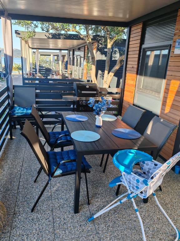 Odlična lega mobilne hišice EMMI ob peščeno-prodnati plaži (20 metrov), idealna za otroke, tudi za najmanj pogumne plavalce. Lastniki so prijazni in so svojim gostom zagotovili vse, kar potrebujejo za počitnice (ležalnike, senčnik, sup, plinski žar in udobno pohištvo na terasi hiše, vse, kar potrebujete). Vsi, ki jih zanimajo družinske počitnice brez hrupa in stresa, naj rezervirajo takoj, ne boste zgrešili. Moja družina se vrača in upam, da bomo naslednje leto ostali več kot 7 dni.
