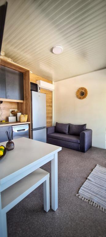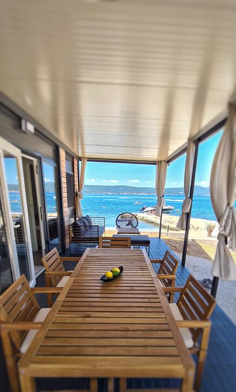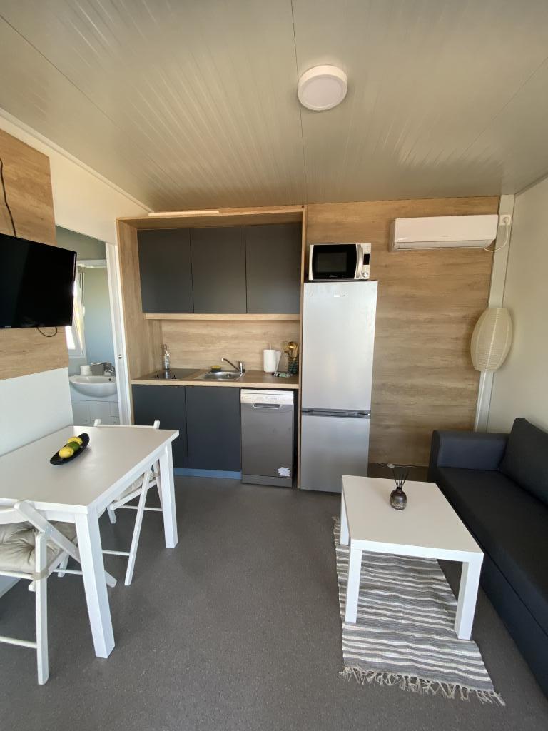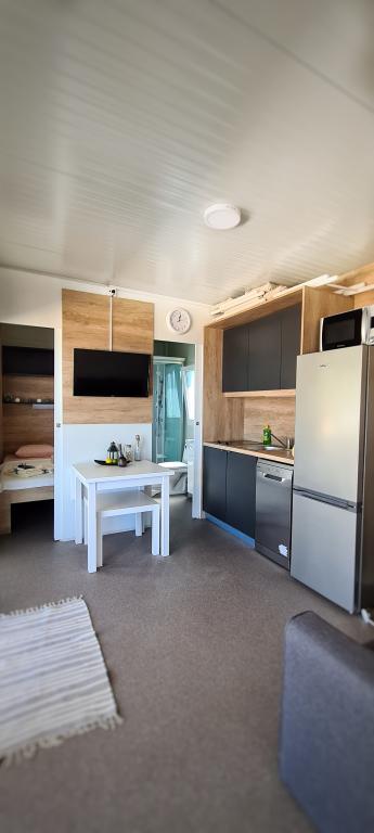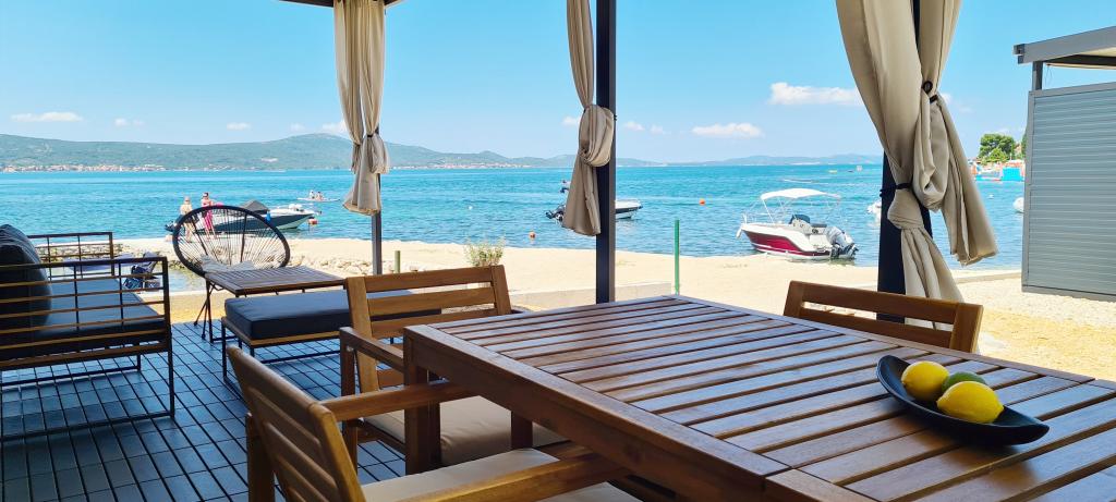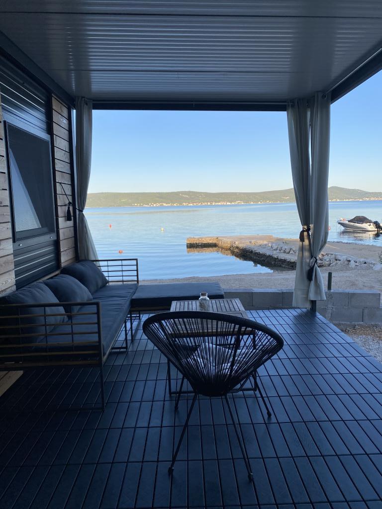 Popolnoma in moderno opremljena mobilna hišica ob mirni plaži v Svetem Petru na Moru. Uživajte v razkošju lokacije, ki ne more biti bližje čudoviti plaži. 2 spalnici, kuhinja, terasa za uživanje in parkirišče ob hiši. Lokacija: Kamp ToRo, Jadranska Magistrala 421, Sveti Petar na Moru.