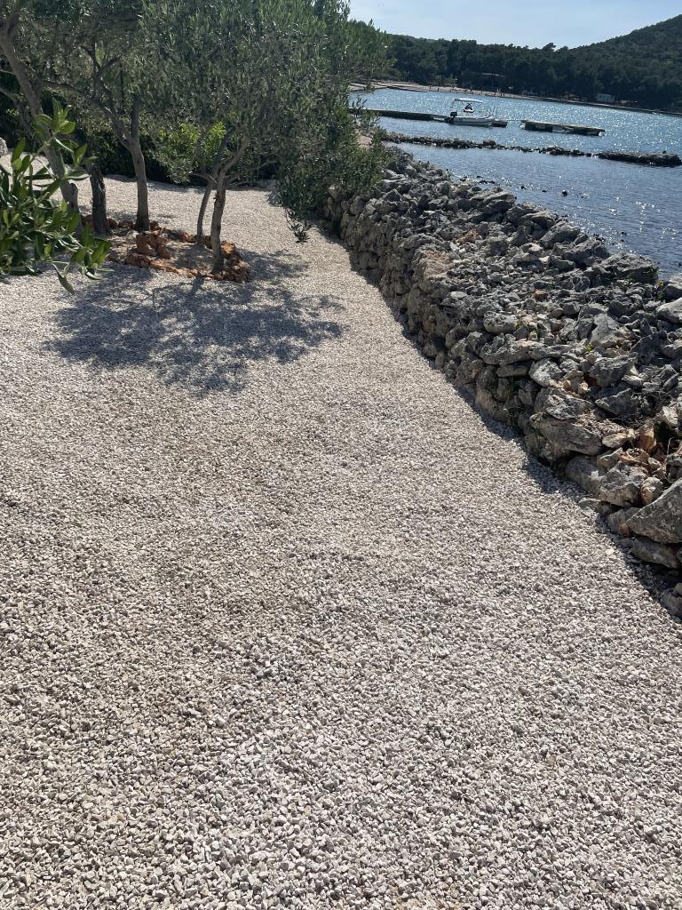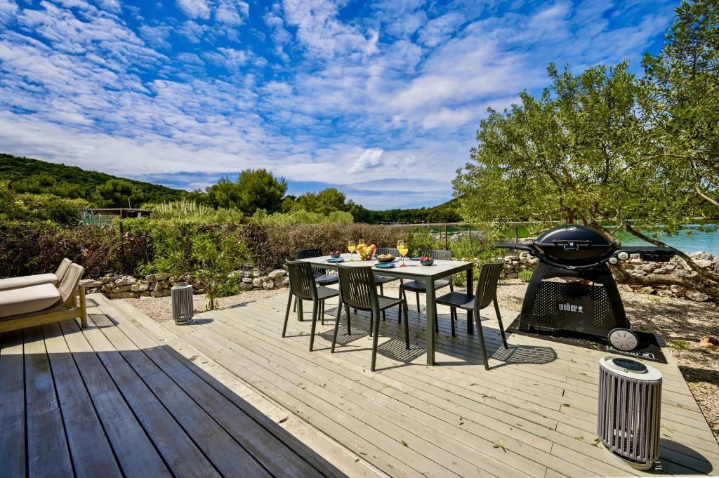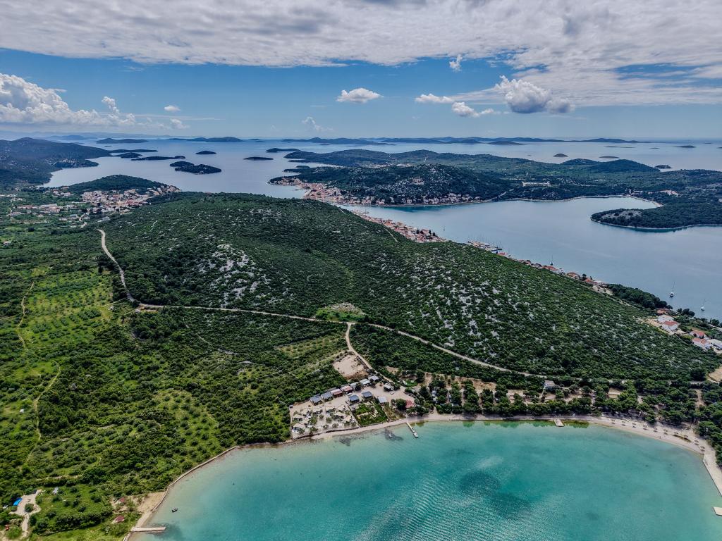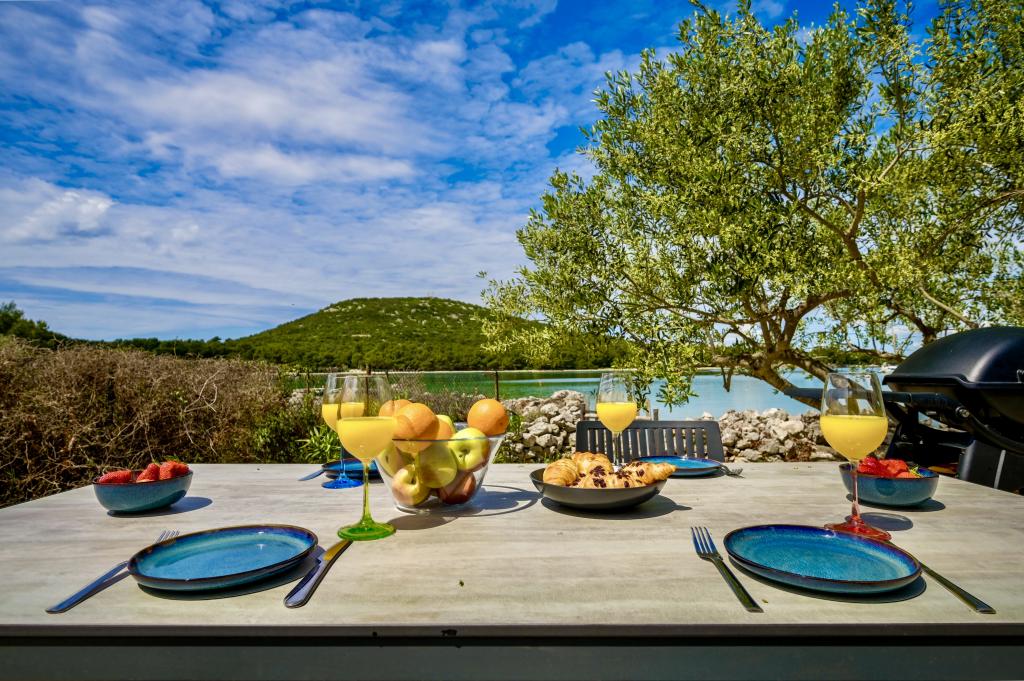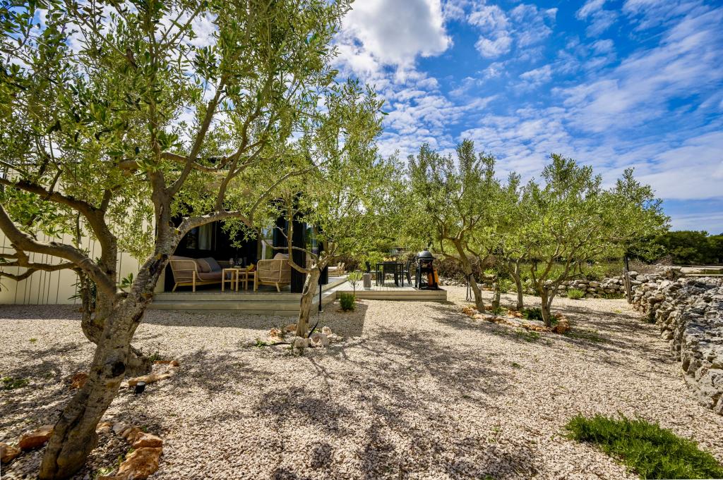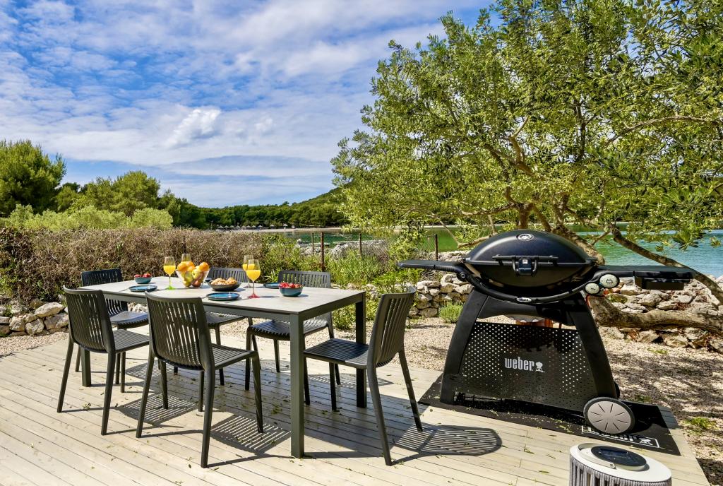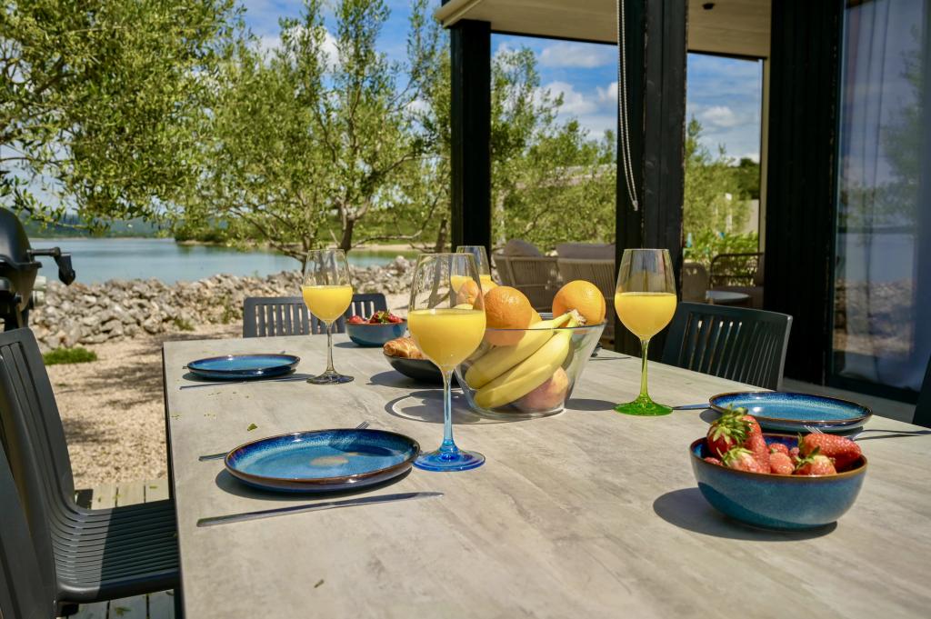 Mobilna hišica je le nekaj korakov od morja. Sodobna notranjost apartmaja se prepleta s tipično Dalmacijo. Obdana z belimi kamenčki in zelenimi oljkami, pred njo pa je le neskončna modrina. Morje, sonce in veter ustvarjajo nepopisno igro, ki navdušuje vse čute. Ne glede na to, ali spite v eni od dveh spalnic, lahko zjutraj uživate v modrini morja in sončnem žaru. Iz popolnoma opremljene kuhinje z vsem potrebnim (vključno s pomivalnim strojem in zamrzovalnikom) in prostorne jedilne mize pa se ponuja nepopisen razgled na teraso in vse čare, ki jih ponujata sonce in morje. Ne glede na to, ali pripravljate obrok v kuhinji ali pečete na žaru na terasi, vam je zagotovljen popoln mir in zasebnost. Cilj vsakega dopusta je pustiti vsakdanje življenje in rutino za seboj, in prav to ponuja naš objekt. Čeprav je obkrožen z 8 podobnimi stavbami, boste uživali v popolni zasebnosti in miru, saj vam vsi stojijo ob strani. Edina omejitev pred vami je nebo in morje.