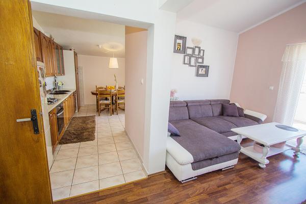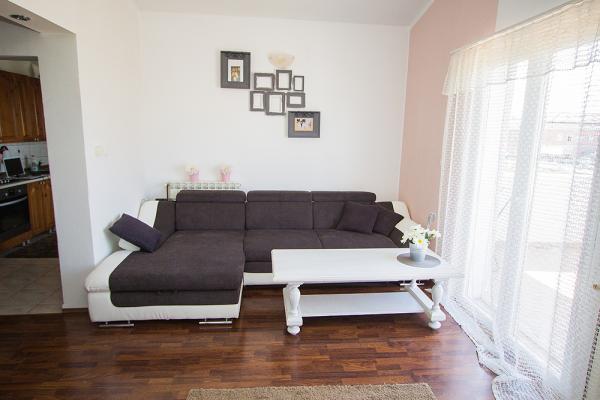 Apartma se nahaja v centru Tribunj, v prvem nadstropju hiše, z lepim razgledom na morje, marino in stari del mesta. Sestavljen je iz dveh dvoposteljne sobe, kopalnica s tušem, dnevno sobo, kuhinjo in jedilnico. Stanovanje ima ločen vhod in dva velika balkona. V bližini se nahaja plaža, igrišče, trgovina, pošta, banka, restavracije. Idealna izbira za ljubitelje miru in za družine z otroki.