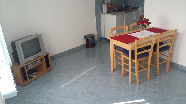 Objekt se nahaja v mirnem okolju. To je 5 minut hoje od bližnjih trgovin in plaže, 300 metrov od marine. V dvorišču žar z mizami in klopmi. Za goste je na voljo parkirišče.