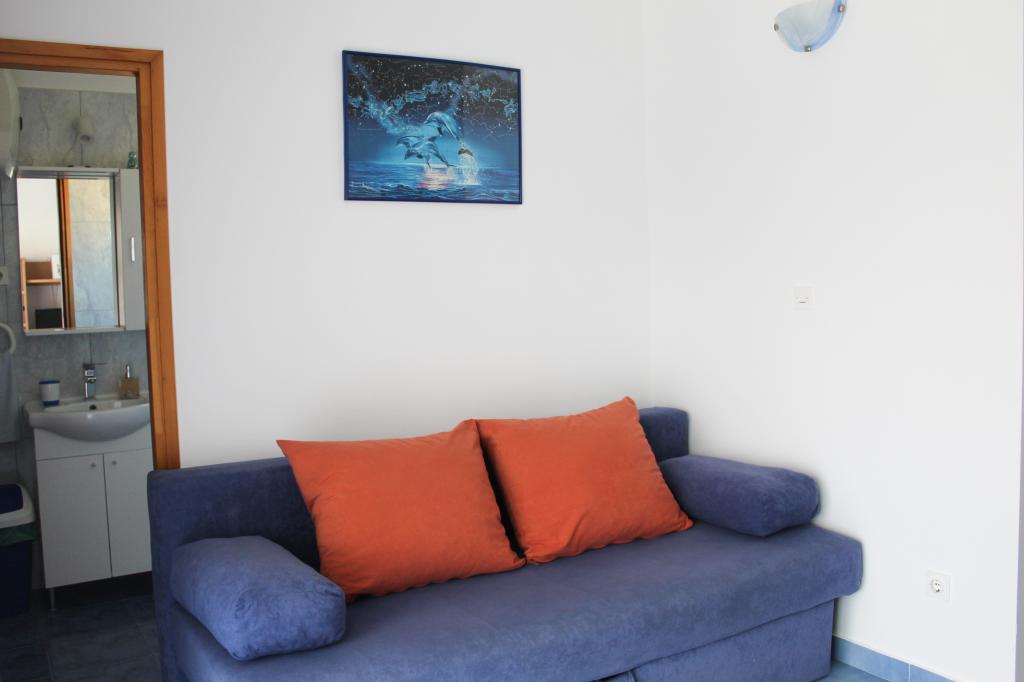 Bazen je na voljo vsem gostom. APARTMA A1 (klima) - se nahaja v pritličju in je sestavljen iz kuhinje, dveh kopalnic, dveh spalnic za štiri osebe, dnevne sobe, TV-SAT, WI-FI, majhnega balkona s teraso in parkirnega mesta. APARTMA A2 (klima) - se nahaja v prvem nadstropju in je sestavljen iz kuhinje, kopalnice, ene spalnice z majhnim balkonom, dnevne sobe z raztegljivim kavčem za dve osebi, TV-SAT, WI-FI, velike terase in parkirnega mesta. APARTMA A3 - se nahaja v prvem nadstropju in je sestavljen iz kuhinje, kopalnice, ene spalnice z majhnim balkonom, dnevne sobe z raztegljivim kavčem za dve osebi, TV-SAT, WI-FI, velike terase in parkirnega mesta.