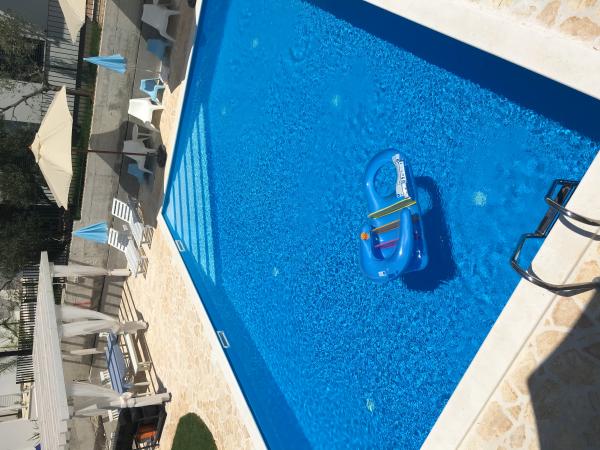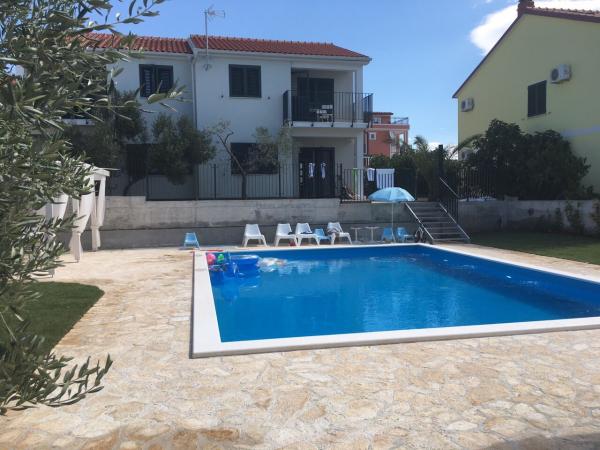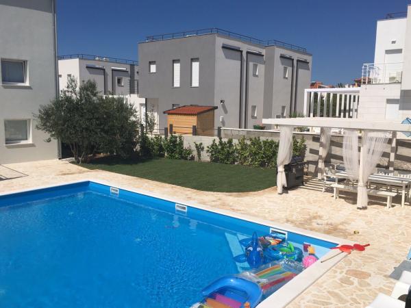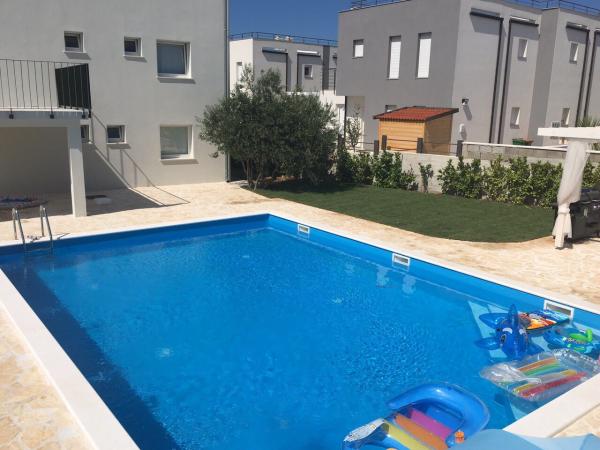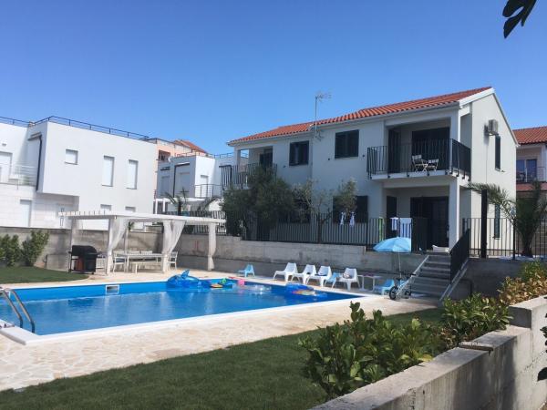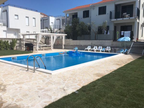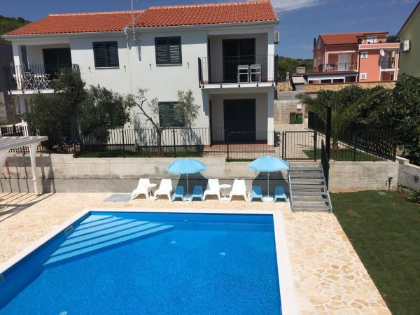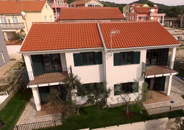 Popolnoma opremljeni in moderno nove apartmaje v mirnem delu Tribunj, v bližini mesta, kar je idealno za brezskrbne počitnice. Apartmaji so idealni za dva, vendar pa se lahko udobno sprejme do štiri goste. Apartmaji so popolnoma opremljeni z vsem, kar potrebujete za brezskrbne počitnice - od kuhinja, kopalnica, pralni stroj, pomivalni stroj, posteljnino, brisače in na prostem skupnem prostoru z bazenom, ležalniki, žar in vrt kuhinjo. Zaradi delitve enot (dve ločeni enoti, vsaka z dvema apartmajema v vsakem), ki so primerni za družine ali družbo 8 članov, ki lahko ostanejo v isti enoti z istim vhodom v dveh ločenih stanovanj. Možno je, da najamete celo hišo, ki lahko sprejme 16 ljudi. Apartmaji se nahajajo le nekaj minut hoje od centra Garade jih trg, trgovine, lekarna, zdravstveni dom, kavarne, restavracije, park in marina in 7 minut hoje od lepe plaže Tribunj. Območje Tribunja je fantastično zaradi svoje lokacije, kot se nahaja v bližini mesta, Šibenik,