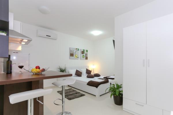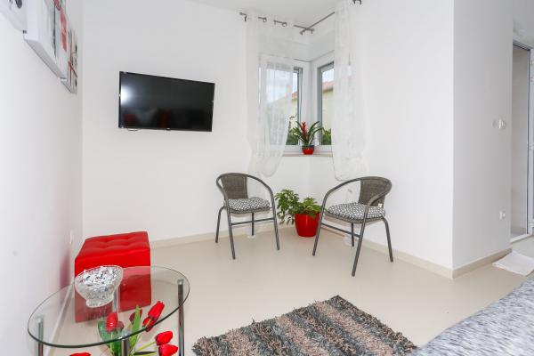 Ta sodoben objekt se nahaja v 4 min hoje od plaže. Sklad Tribunj Suites se nahaja v mirnem delu Tribunj, na 1, 2 km od pristanišča Tribunj in 200 m od Tribunj marine. Premoženja ponuja klimatizirane sobe, brezplačen brezžični internet in brezplačno parkirišče. Vse enote vključujejo sedežno garnituro in jedilnico. Nekatere imajo teraso in / ali balkon. Vse enote so kuhinja opremljena z mikrovalovno pečico, toaster, hladilnik, štedilnik in kuhalnik vode. Imajo tudi lastno kopalnico s tuš kabino in sušilcem za lase. Gostje lahko uporabljajo žar na mestu Tribunj The Suites. Zadar letališča je 49 km od premošenja Tribunj Suites.