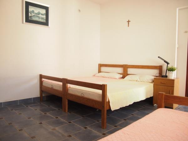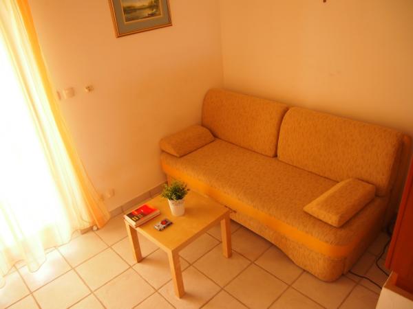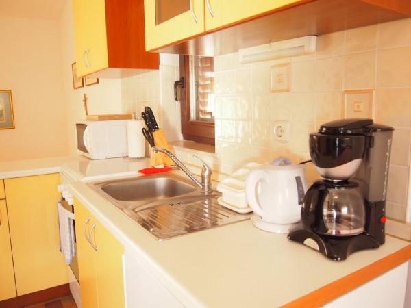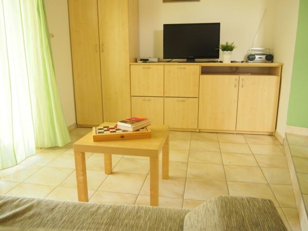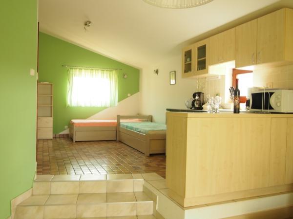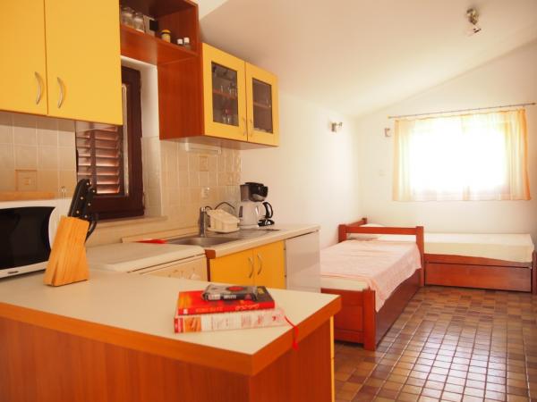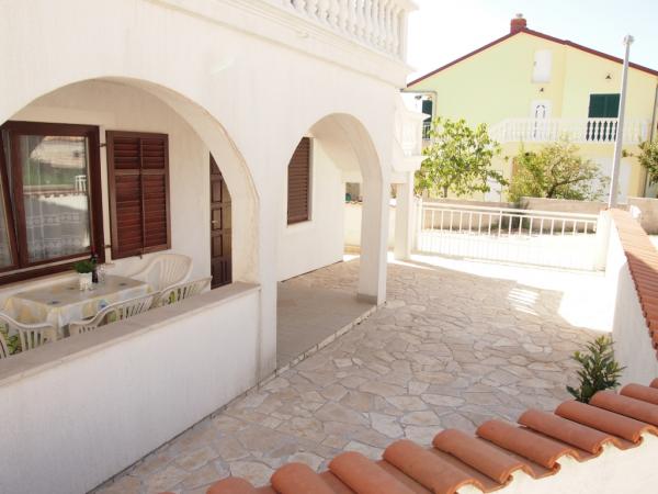 Naši apartmaji se nahajajo v družinski hiši, zgrajeni leta 2006, ki se nahaja v mirni ulici, v bližini centra Vodice (okoli 300m). Vsi apartmaji so opremljeni z modernim pohištvom in opremljeni z vso potrebno opremo. Nudimo vam tri apartmaje, od katerih sta dva, ki se nahajajo v prvem nadstropju, s čudovitim pogledom na morje in eden se nahaja v pritličju in je idealna za družine z majhnimi otroki, ki želijo uporabljati dvorišče. Vsak apartma ima parkirni prostor na dvorišču in gostje lahko uporabljajo žar, ki se nahaja na dvorišču in gugalnice za otroke. Vsi apartmaji imajo: - Prosti neomejeno "brezžični" dostop do interneta - Klimatska naprava - Uporaba pralnega stroja - Pokrita terasa z mizo in stoli - Dvorišče parkiranje - Turistična taksa vključeno v ceno.