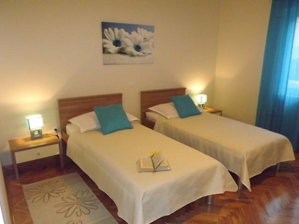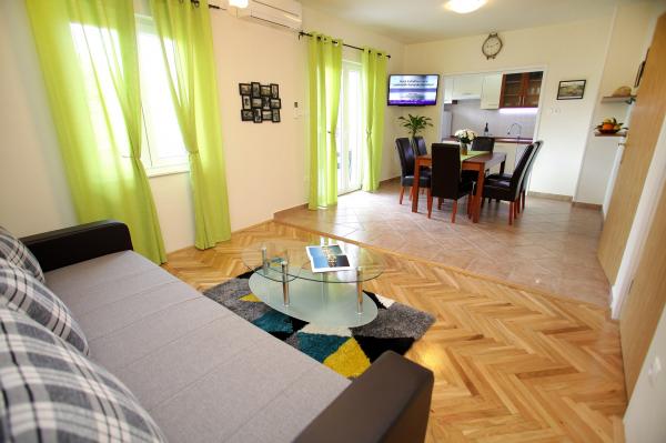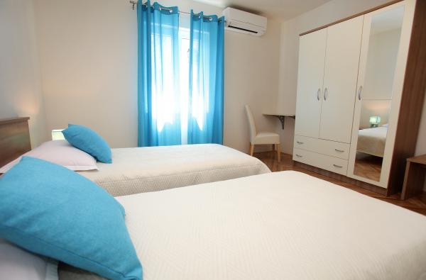 Stanovanje Biočić se nahaja v mirnem delu otoka Čiovo, vendar le 5 minut hoje od centra mesta. Plaža je 10 minut hoje od hiše in obstaja možnost, da številne druge plaže, bodisi z avtom nobenih taxi čolni, ki odstopajo vsako uro v bližini objekta. Apartma 90 m2 20 m2 terase, ki ponuja udobno namestitev za 6 oseb. Dve spalnici, dnevna soba, jedilnica in kuhinja in prostorno teraso vam zagotavljajo vse, kar potrebujete za udobno bivanje v bližini mesta, vendar stran od mestnega hrupa. Apartma je v celoti klimatiziran (vsaka soba ima svojo klimatsko napravo) in opremljen z vsemi potrebnimi gospodinjskimi aparati (pralni stroj, pomivalni stroj, mikrovalovna pečica, hladilnik z zamrzovalnikom, aparat za kavo, likalnik, sef, TV in Wi-Fi neizogibna), tako da lahko res počutim doma. Parkirišče je poleg stavbe, kot tudi zasebni privez bližini (brezplačno za bivanje 7 dni ali več).