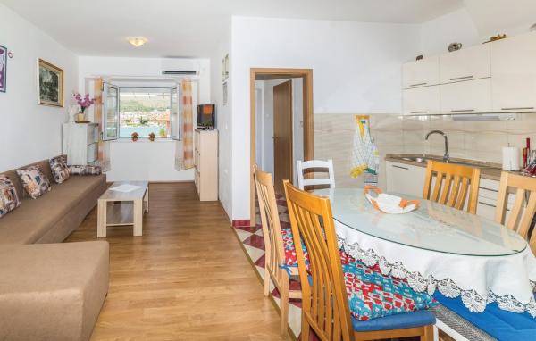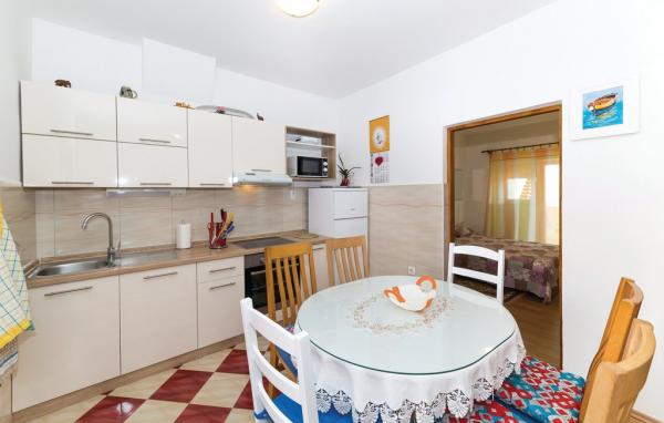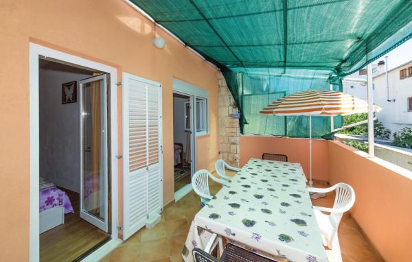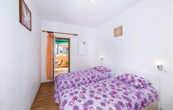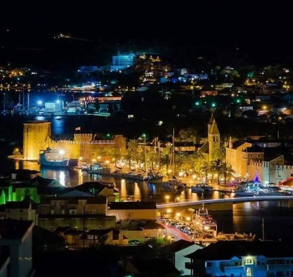 Opremljeno stanovanje drugo vrstico od morja v mirnem predelu Trogirja, ki je primerna za veliko družino s svojimi 55 m2, dva balkona, ki segajo na počitnice do 75 m2, ki se nahaja 400 metrov od centra mesta in 30 metrov od morja in 50 metrov od plaže. Stanovanje se nahaja v prvem nadstropju in ponuja dodatno mir to bolj kot lastniki živijo v drugi hiši 50 metrov.