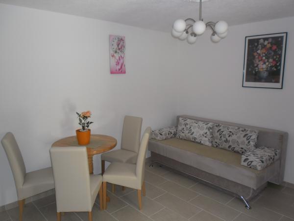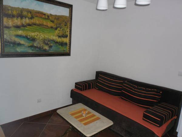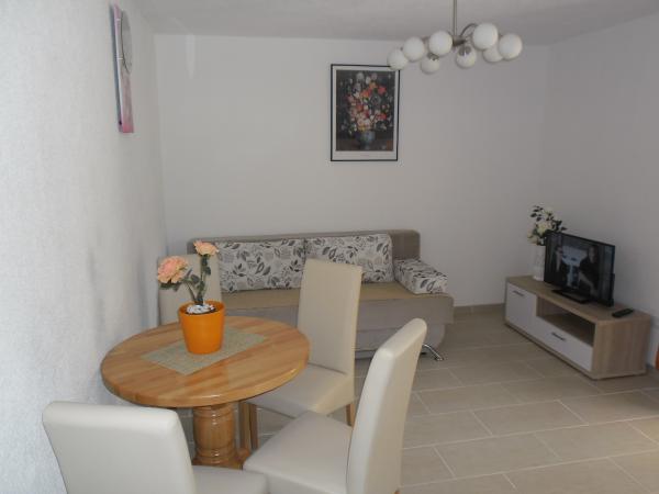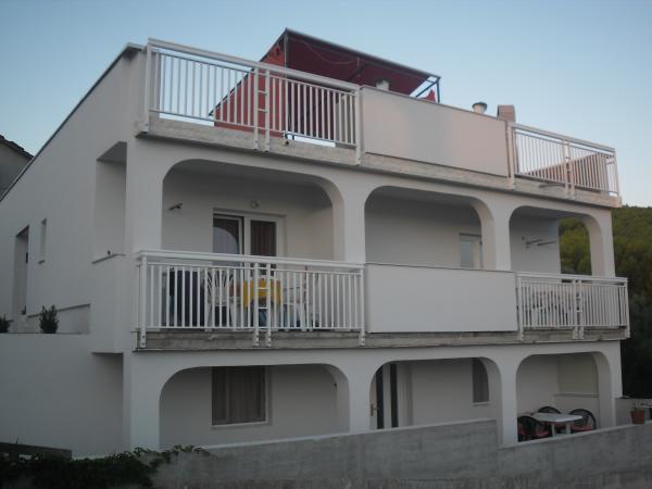 Stanovanje Knezevic se nahajajo v Arbanija -Ciovo! Hiša ima tri apartmaje in lahko sprejme do 10 ljudi. Vsi apartmaji so zelo lepo narejeno in ima teraso, klimo, internet, parkirišče, popolno kuhinjo, satelit, itd! Hiša se nahaja v zelo mirnem kraju, in se ponaša z veliko teraso 130m2 z omamljanjem poglede na morje in ki bo redko našli! Morje in plaže imajo največ 3 minute hoje od trgovin in restavracij je 5 minut hoje! Mesto Trogir je 5 km in 25 km do Splita, kjer lahko pridejo z avtobusom ali ladjo. Prvi nacionalni park je cca 50 km. Čiovo-Trogir in Split ponujajo veliko lepša in še posebej mesto Trogir, ki preprosto ne morejo opisati, vendar morate doživeti!