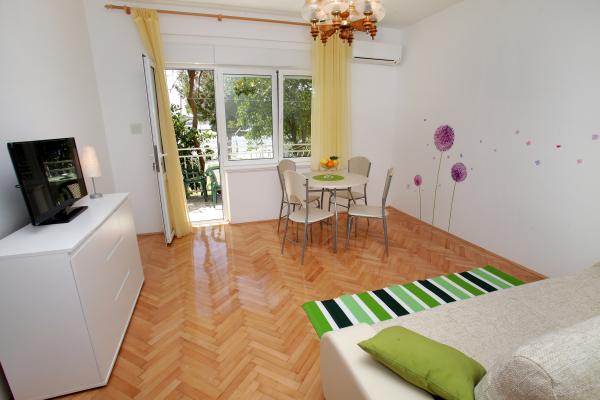Apartmaji in sobe se nahajajo v Okrug Gornji na otoku Čiovo, 2 km od centra mesta. Ti se nahajajo v bližini peščene plaže, zelo dostopna za otroke in družine. Vsi apartmaji imajo pogled na morje in so opremljeni s klimatsko napravo in brezžični internet in parkirišče. Hiša ima privez za čoln up za približno 7 metrov, z dodatnim plačilom. Gostje lahko uporabljajo vrt in dom, kot tudi žar.