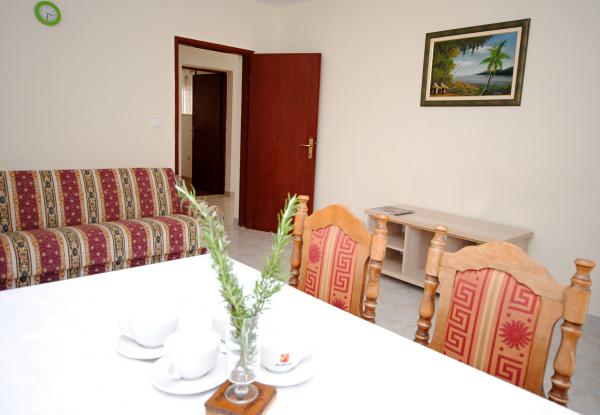 Ljubitelji Unescovega spomenika mesta Trogir in otoku Čiovo, adrenalinskih ljubitelje športa in divjih čiovskih plaže, poletne gneče, nočni ribolov in hojo po gozdu apartma za 6 oseb (le 2,5 km oddaljen od Trogirja) - se nahaja na severni strani otoka Čiovo v Okrug Gornji - idealna priložnost za vas! Čiovo ponuja samoto in eagles gnezdo v Prizidinice, festivali ribolov v Arbanija, lepi gozdovi, divje plaže v bližini zapuščenem kamnolomu v Slatini, pelji skuterji okoli otoka, nočno življenje v Trogirju ... Do starega 1700 let, Dioklecijanova palača v središču mesta, je 0, 5 ur vožnje. Enostavno na izlete na bližnje otoke Šolta, Brač in Hvar do magične pokrajine slapovi in Plitvice.