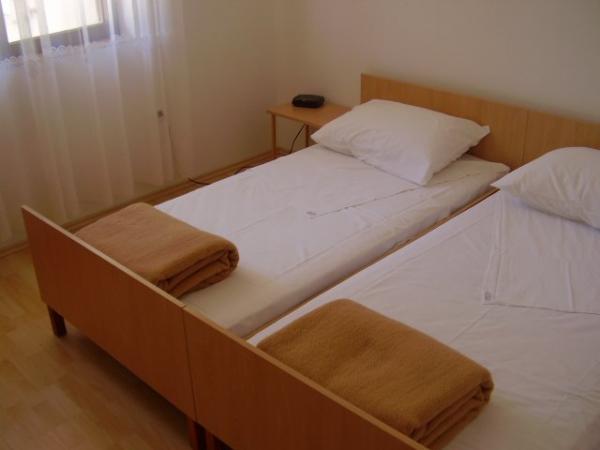 Komar Apartmaji se nahajajo na umetnem polotoku Čiovo, le 1, 6 km od Trogirja, mesta pod zaščito Unesca. V bližini letališča (6 km) in Split (30 km). Apartmaji se nahajajo v bližini borovega gozda in v neposredni bližini morja (200 m), kjer je prodnata plaža z borovim senco in majhnim taverna z glasbo.