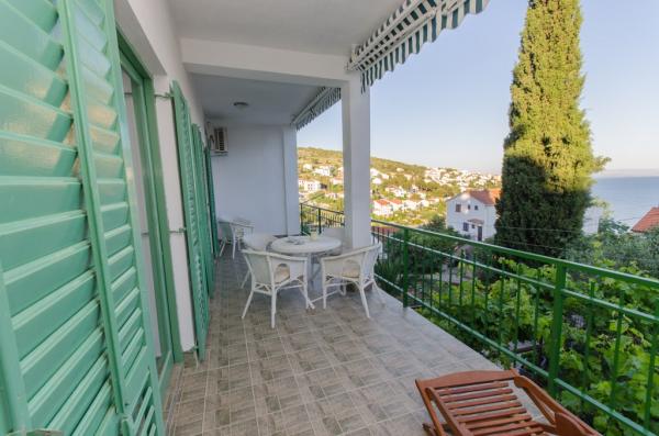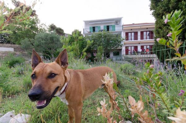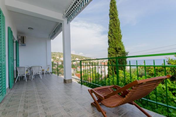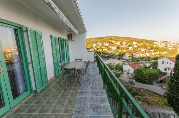 Udobni in prostorni apartmaji v zalivu Mavarčica, Trogir, obdan z zelenjem, s prostornimi balkoni in terase na jugu na zahodni strani in parkirišče.