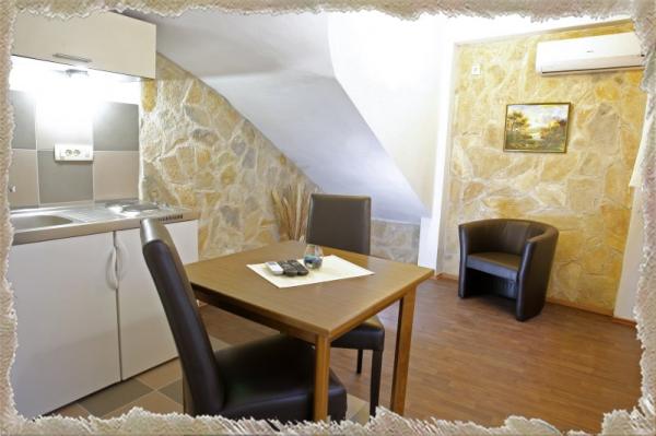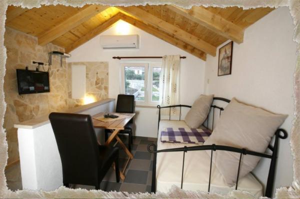 Celoten koncept naše počitniške hiše je zasnovan kot majhen, magično oazi. Nismo želeli, da material, ki kaže, ali smo narava hiše želel zasenčiti in spodkopavajo sijaj in sodobno tehnologijo. Zaradi zgodovine kraja, ki je stara več stoletij, zgodovina povedal, stene, če se le malo fit, je globoko zajel sapo in pustite, nam zaupajo, boste slišali, kaj govoriš in kaj hočeš povedati. Zaradi vseh teh okoliščin, smo želeli ohraniti prvotno duh kraja, hiše, imate prav toliko, kot ga potrebujete za udobno bivanje, na drugi strani pa vam je uspelo, da diha stari duh kraja, občutek vetrič, vonj morja, gozdov, skal in ruševin. Ker je vse Dalmacija, Seget in njen popoln malo nedotaknjen srca. Čar in Poseben čar lokacijo naših hiš je, da ste zaščiteni v strukturi vasi Okrug, ki leži med kvadratnih stolpov. In po le nekaj metrov preko likvidacije, staro, mestno ulico se znajdete v središču vasi, kjer so restavracije, kavarne, plaže, itd