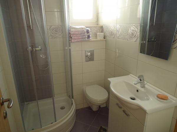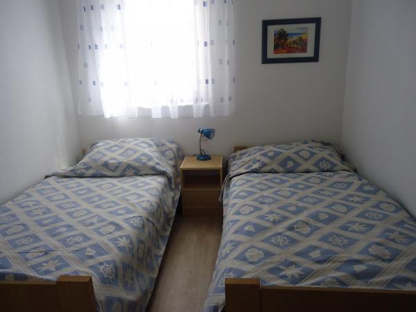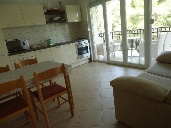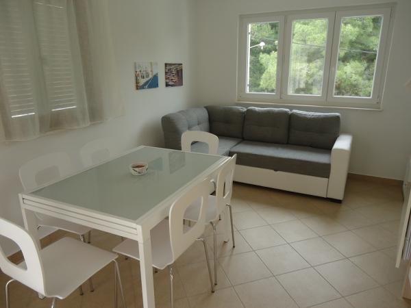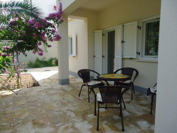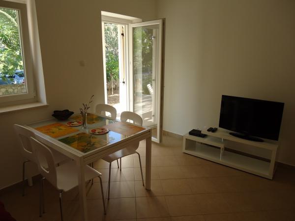 Novi in luksuzne apartmaje na mirni vasici Okrug Donji na otoku Čiovo. Čiovo je otok povezan z mostom s kopnim. Vsak apartma ima dve spalnici, velika kuhinja opremljena z vsemi potrebnimi pripomočki, satelitsko LCD TV, brezplačni brezžični internet, in vsak apartma ima teraso ali balkon. Peščena plaža, 100m od apartmajev in najbolj priljubljenih na Čiovu za družine z otroki, saj ni gneče in ima veliko sence, saj je vzdolž plaže pas borovcev. Tudi pod hišo je več manjših plaž na skalah, ki ponujajo večjo zasebnost. Trgovina je oddaljena le 300m od apartmaja.
