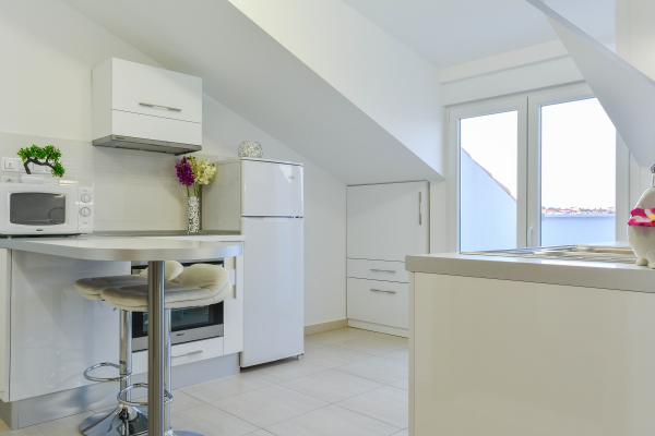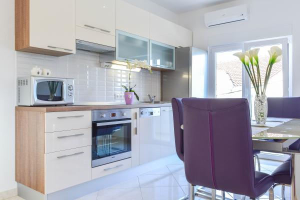 Luksuzni apartmaji Villa Tea se nahaja le 50 m od plaže v zgornjem County in 1, 5 km od Trogirja. Letališče je le 5 km. Za goste je na voljo brezplačno parkirišče in brezžični dostop do interneta. Vse Apatmani imajo balkon s pogledom na morje in popolnoma opremljeno kuhinjo s pomivalnim strojem, mikrovalovno pečico in kotliček. Studio apartmaji in vsaka spalnica in dnevna soba v stanovanju je opremljena s TV s satelitsko televizijo in klimatsko napravo. Kopalnice so opremljene s tuši, sušilniki za lase in izdelki za osebno nego. Likalnik in likalna deska so na voljo na zahtevo. Apartmaji so sestavljeni iz dveh spalnice z je kopalnico v sobi na voljo kot dodatno ležišče v dnevni sobi za dve osebi. V bližini so razne športne objekte, kot najem jet smuči, jadralno padalstvo in tudi možnost barko. Plaža je primerna za otroke z mini aqua park
