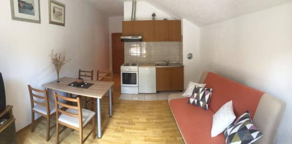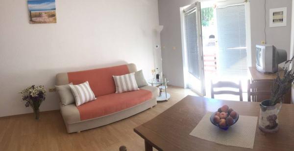 Popolnoma opremljeno stanovanje se nahaja na mirni lokaciji z lepim pogledom na morje in mesta Trogir. Popolnoma opremljena kuhinja, balkon na obeh straneh stanovanje, parkirišče vključeno v ceno, z možnostjo najema garaže 5 EUR / dan, velik kamin s teraso. Objekt se nahaja 10 minut hoje od plaže, do glavnega mestnega sprehajališča in centra mesta je 15 minut hoje. Pridite in uživajte v lepo staro mesto Trogir, ki je pod zaščito Unesca. Možnost dajanja dodatno ležišče za 1 osebo. Okrog stavbe Najbolj priljubljene znamenitosti • Marjan11, 9 km • Galerija Meštrović12, 7 km • Spaladium Arena14 km • Arheološki muzej v Splitu14 km • Trg republike - Prokurative14, 1 km • Ljudski trg - Pjaca14, 3 km • Dioklecijan palača14, 4 km • Katedrala. Dujma14, 4 km • Gregory Ninski14, 5 km • Arheološki park Salona18 km Restavracije in trgovine • Studenac Supermarket0, 5 km • Monaco Kafić0, 8 km • Smokvica Kafić0, 9 km • Mestni trg Tržnica1 km • Don Dino restoran1 km • St. Dominik Rest
