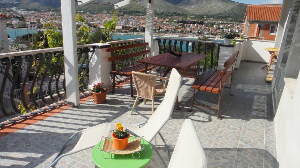 Apartma s tremi spalnicami, idealen za oddih, rekreacijo, s teraso s čudovitim pogledom na morje in mestom Trogir. Prednost apartmaja je oddaljenost od centra 10 min hoje, od plaže 5min, do letališča 3km. Rekreacijsko območje vključuje fitnes kotiček, tek na progi in naravno sprehod. Parkiranje je zagotovljeno.