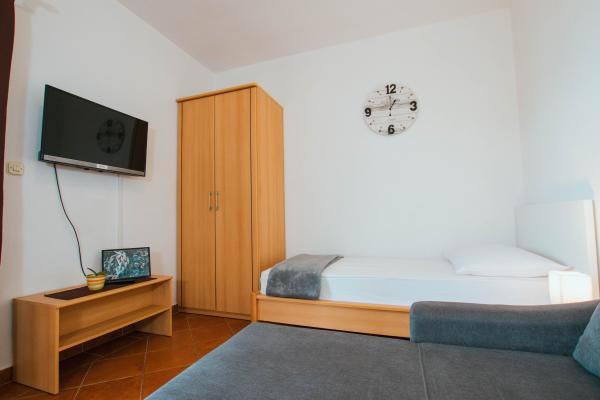Apartmaji Sara se nahaja na otoku Čiovo, 3000 metrov od mesta Trogir v Mastrinka -Arbanija. se nahaja v dvo-družinske hiše. v večji kamniti hiši je odličen app za 7 oseb in v manjši 3 aplikacijo za 12-15 ljudi. oddaljenost od morja je 20 metrov. plaža je primerna za otroke in odrasle, ker ima veliko naravne sence. Plaža je prodnata in del betona. morje ni globoko in je primerna za otroke. vse, kar ste želeli vprašati, kakšna vprašanja bo odgovorila na način mail hvala fam. Belas rezervacije v juliju in avgustu, končajo v soboto ali nedeljo Sunday- APP A7 ima 3 spalnice APP 4 2 sobe APP 4 1 2 sobe APP 4 1 ima 1 spalnico
