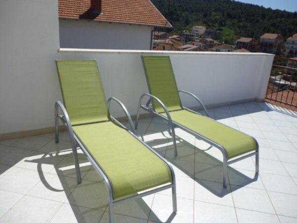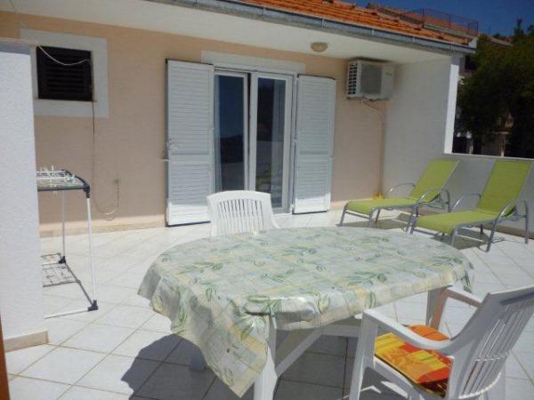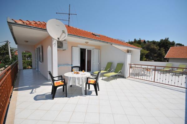 Mi smo bili v septembru. Brez besed lahko opiše lep pogled iz balkona starodavnega mesta Trogir, gore, morje, jahte. In dan in noč. V posebno zadovoljstvo, da je kosilo na balkonu. To je relativno mirna lokacija. Mi je všeč. Če sem iskren, dan so letala dol in se malo hrupa, vendar je bilo tudi zanimivo. Nedaleč - čudovito pekarna. In ribji trg v Trogir - razlog za sprehod po starem delu mesta (1,5 km v eno smer). Stanovanje je opremljeno. Mi ne nasprotujejo njim. Gospodinja - Miranda - zelo prijetna, vljudna in veselo žensko. Vila se nahaja na hribu na strmem pobočju. Ozke ulice so prehodov za pešce, morate deliti z avtomobili in skuterji. Da lahko postanejo živčni. Če nimate izkušenj pri vožnji v takšnih razmerah - pustite avto doma. Brez dobre plaže okoli 2 km! To je kraj za ljubitelje pohodništva. Nasprotovanje apartmaju: postelje so udobne, Škripa, opremljena - sintetična in sistemi. Vrata ne delujejo pravilno, ne more biti zaprta in vode je, ko dežuje. V kopalnici - grozen vonj vsako noč. Brez ogledala, razen odsev v vratih. Upam, da so začasne težave.