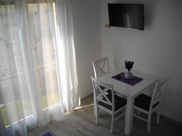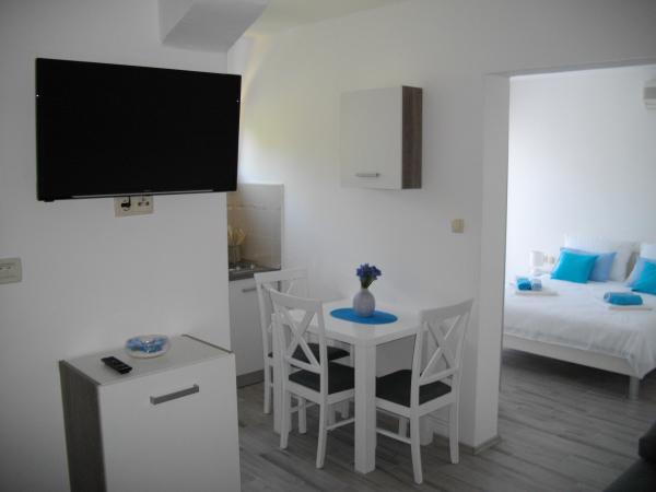 Studio apartmaji Goga, ki je na voljo v starem mestnem jedru, na mirnem in tihem mestu, v centru Trogirja, v drugem nadstropju s pogledom na znamenitosti in morje. Apartmaji so moderno in popolnoma opremljeno. Nudimo dva apartmaja. Oba apartmaja sta klimatizirana in opremljena z LCD TV, satelitsko televizijo in z brezplačnim brezžičnim internetom. Parkirišče za vse goste je na voljo brezplačno. Upamo, da boste izbrali naše apartmaje za vaš dopust v Trogirju in mi bo dala od sebe, da bi vaš dopust čim boljše.
