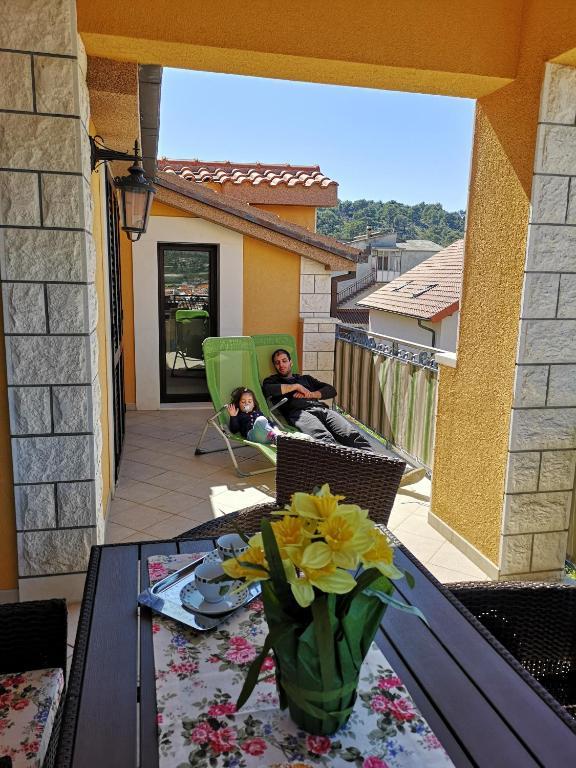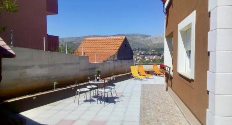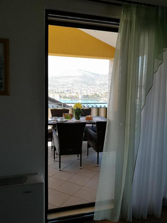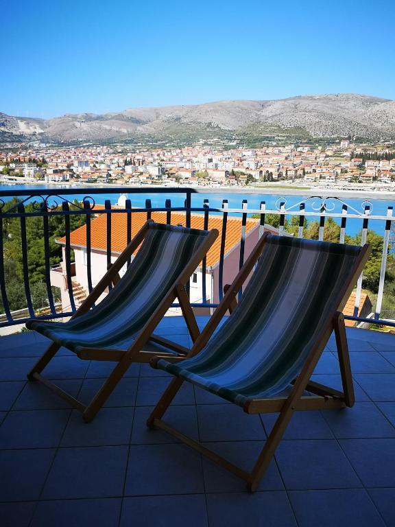 Moderno opremljeni apartmaji na mirnem hribu s čudovitim pogledom na morje in mesto Trogir. Hiša se nahaja le 10 minut hoje od centra mesta in vseh najboljših restavracij. Prodnata plaža je oddaljena le 150 m po poti skozi gozd.