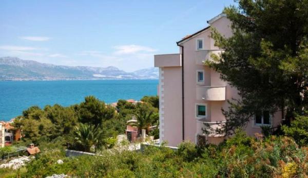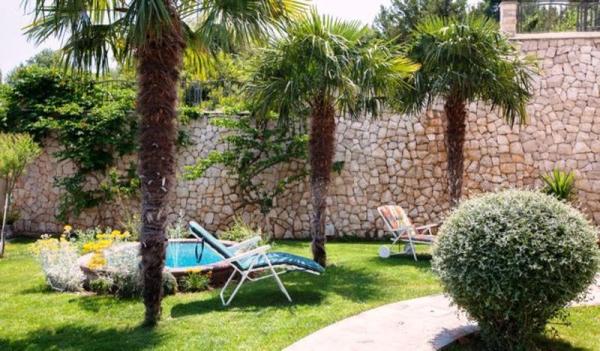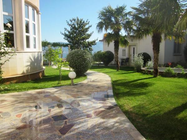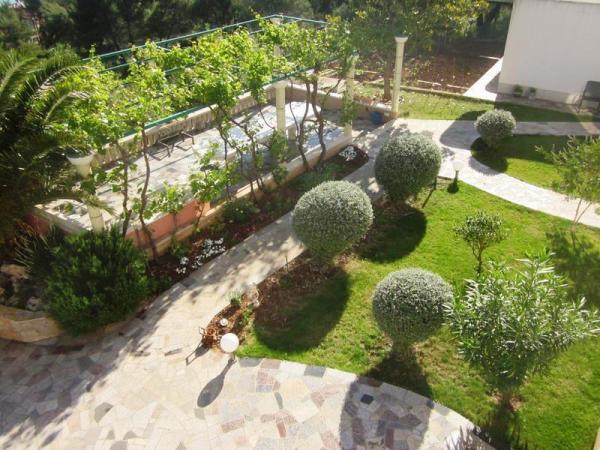 Vila (750m2), ki je obdana s palmami, cvetjem in rastlinami Gentile meditterian v lepem vrtu. Obstaja velik vrt 650 m2; s fontano, krovu, žar in prostor za jedilno mizo. Skupaj ima 1250 kvadratnih metrov. Mirna, borovi gozdovi in osupljiv pogled na Jadransko morje, skupaj z možnostjo Laze na teraso naredi Vila odličen kraj za počitek, saj se nahaja le 70 metrov od plaže (kratek sprehod). Ribja restavracija z lokalnimi specialitetami, dva mesa restavracija, pizzeria, aperitiv bar na plaži, velik supermarket s sadjem in zelenjavo in vse potrebne sestavine, ki so tudi 70-100 metrov. Apartmaji so štiri zvezdice (****). Villa Gloria je majhen wellness Nudimo tudi manjšo telovadnico z opremo vadbo
