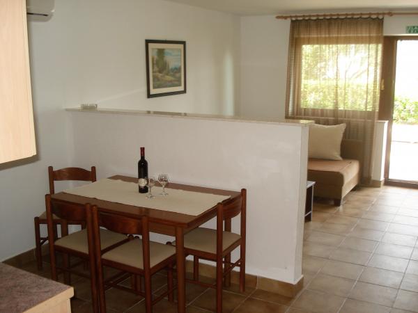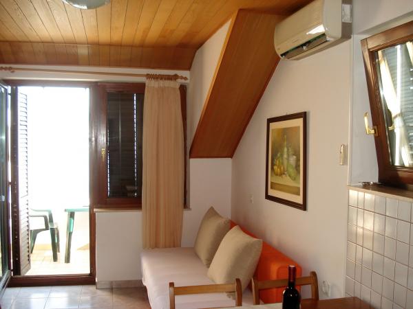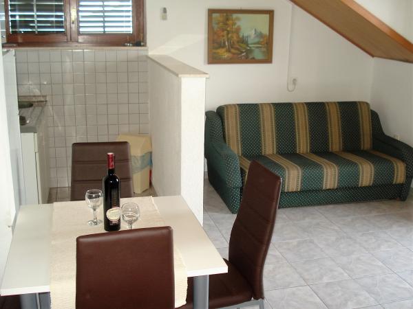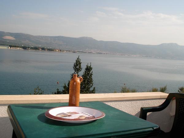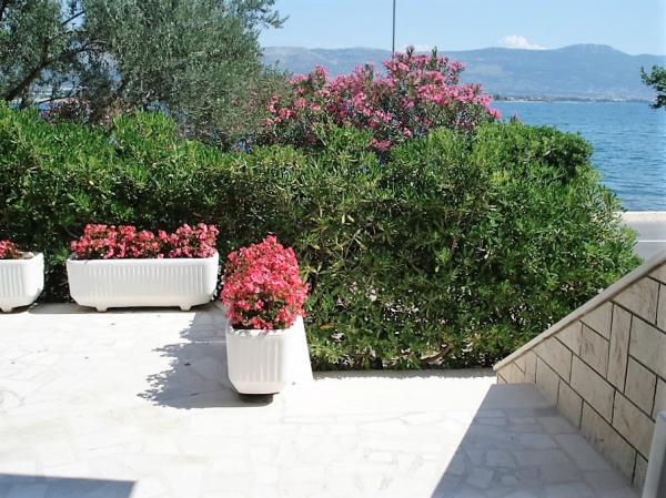 Dobrodošli! Zagotovitev lepote Dalmacije v apartmajih Villa "Iva", ki se nahaja v neposredni bližini morja (10 m). Imamo štiri apartmaje, ki so klimatizirani, popolnoma opremljeno, z ločeno spalnico, kopalnico, dnevno sobo s kuhinjo in teraso, kjer lahko uživate čudovit razgled na Kaštelanski zaliv. Parkirišče za vaše vozilo je zavarovana v ograjenem prostoru, gostje lahko uporabljajo zunanji solarni tuš zraven apartmajev in žar. V bližini Villa "Iva" in na plaži so objekti s hotelom, gostinstvu in poslovnih objektov (trgovine, mesarji, peki, restavracija, ..., ki se nahajajo do 100 m). Raziščite biser Sredozemlja starega mesta Trogir in Čiovo otok, knjiga, ki jo za povprečno ceno vrhunsko namestitev, uživajte predvsem ob obali.