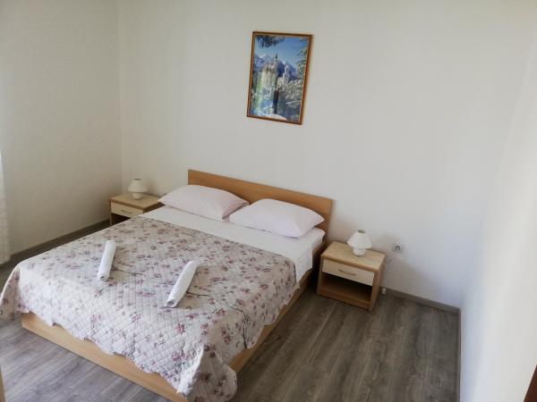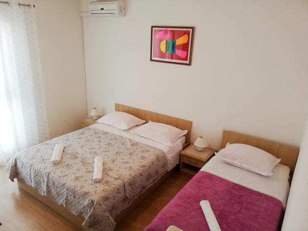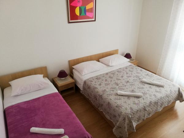 Moderno opremljeni apartmaji in sobe v bližini Makarske, 100m od morja. Objekt se nahaja v Tučepih, 5 minut hoje od centra mesta. Nahaja se na vzpetini, ki daje nastanitvi lep pogled na morje in edini kraj. V namestitvi je apartma za 4 ali 5 oseb, studio za 2 osebi in dve sobi za 3 osebe. Cena vključuje internet, klimatsko napravo in parkirišče.