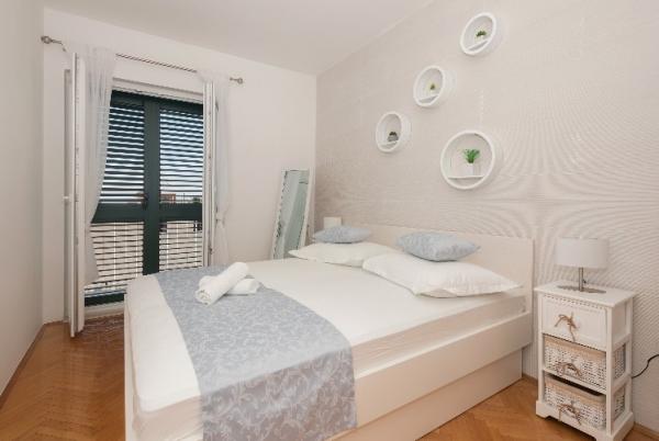 Našim gostom nudimo sodobno opremljen in zelo udoben apartma v velikosti 85 m2, sestavljen iz dveh spalnic, velike dnevne sobe s kuhinjo, kopalnice, ločenega WC-ja, hodnika in terase s pogledom na morje. Do čudovite prodnate plaže z različnimi restavracijami, bari in drugimi vsebinami je 4-5 minut hoje. Ena najlepših promenad na Jadranu vas popelje do centra, ki je oddaljen 15 minut hoje. Apartma je opremljen s klimatsko napravo (je v dnevni sobi, vendar brez težav hladi celotno stanovanje), wi-fi, Smart TV, Netflix, prostorno kopalnico in popolnoma opremljeno kuhinjo. Na voljo sta tudi dve parkirni mesti (vključeni v ceno).