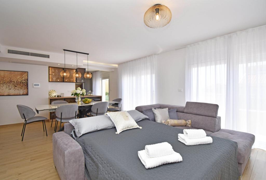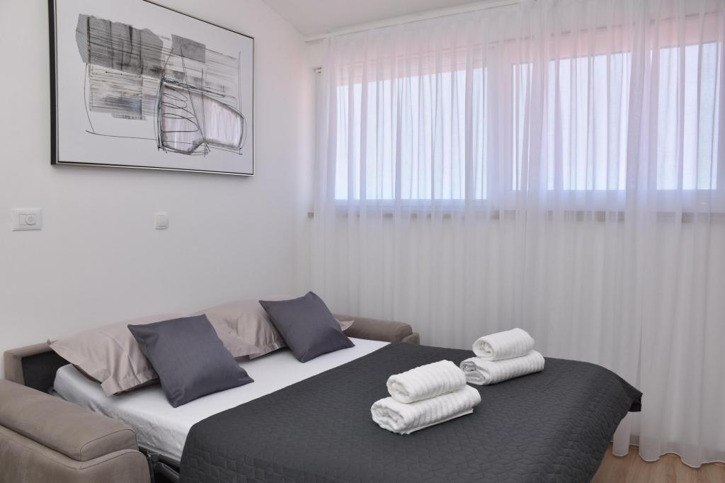 Stanovanje je čisto, lepo in udobno. Ustrezno opremljena. Odlični, prijetni gostitelji, ki ves čas skrbijo za svoje goste. Lokacija zelo blizu plaže in promenade, vendar v taki razdalji, da je bilo ponoči tiho. Dostop z avtomobilom po promenadi ni tako težak. Zagotovo se bomo vrnili sem!
