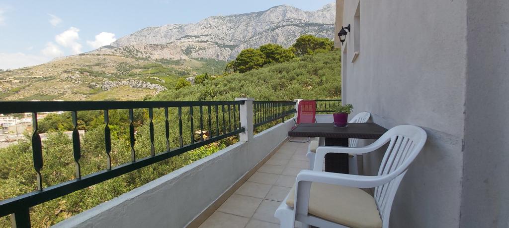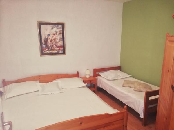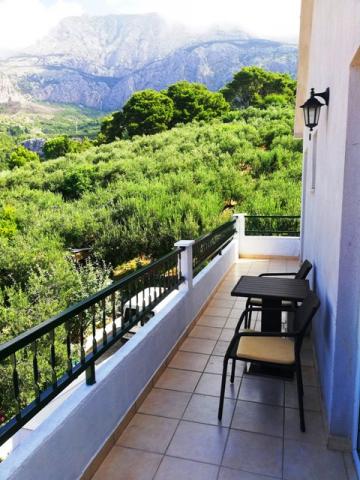Opremljeni apartmaji v tihem in mirnem delu Tučepov nad glavno cesto, dovolj oddaljeni, da ne slišite hrupa mimovozečih avtomobilov. Apartma z razgledom se nahaja v drugem nadstropju, velik balkon, pogled na morje in gore, čajna kuhinja, spalnica, wc, primeren za pare. Dvosobno stanovanje se nahaja v kleti, brez pogleda na morje, dve klimatizirani sobi, opremljena kuhinja, kopalnica s kadjo, zunanji prostor za sedenje, vrt, prijeten za poletno vročino in primeren za družine. Vsak apartma je klimatiziran, potrebno je uporabljati stopnice. Plaža in center sta oddaljena nekaj minut hoje, brezplačen internet in parkirišče. Upoštevajte, parkiranje ni primerno za kombije, avtodome in vozila s prikolico.
