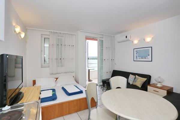 Apartmaji se nahajajo na mirni lokaciji v Turanj. Objekt se nahaja ob morju, in vsak apartma ima pogled na morje. Paz je le 10 metrov.