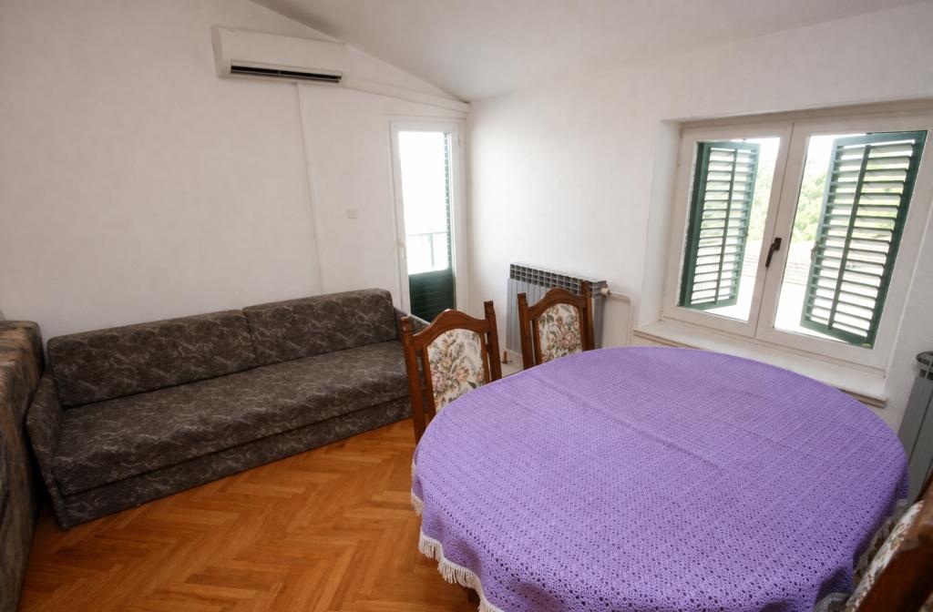 Dobrodošli v našem apartmajskem naselju, ki se nahaja v slikovitem Turnju, idealni lokaciji za sprostitev in raziskovanje Dalmacije. Kompleks sestavljajo 4 udobni in opremljeni apartmaji, od katerih ima vsak svoje značilnosti, ki zagotavljajo udobje in zasebnost. Gostom je na voljo skupno dvorišče z veliko sence in velikim kaminom za druženje. Plaža je oddaljena le 150 metrov, medtem ko so restavracija, kavarna in trgovina na dosegu roke, v krogu 200 metrov od stavbe. Vsi apartmaji imajo brezplačen brezžični internet in zasebno parkirišče, kar dodatno prispeva k vašemu prijetnemu bivanju. Trije od štirih apartmajev imajo pogled na morje, apartmaji v drugem nadstropju pa imajo skupen balkon.