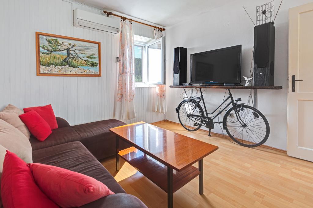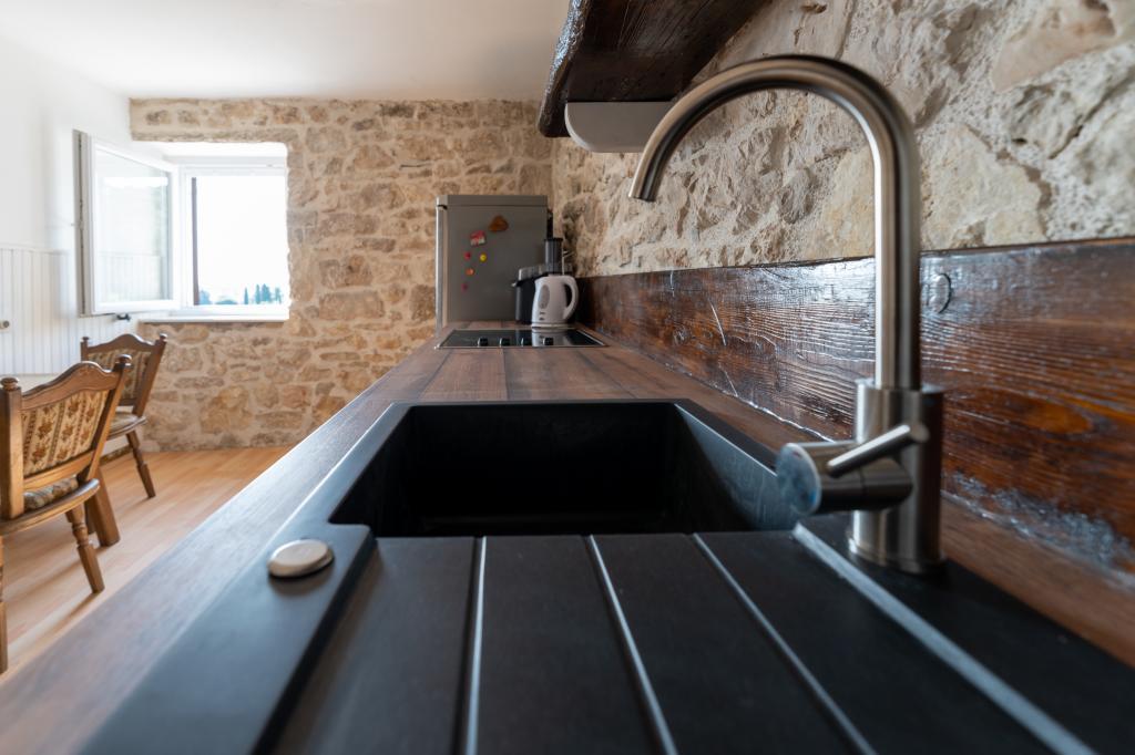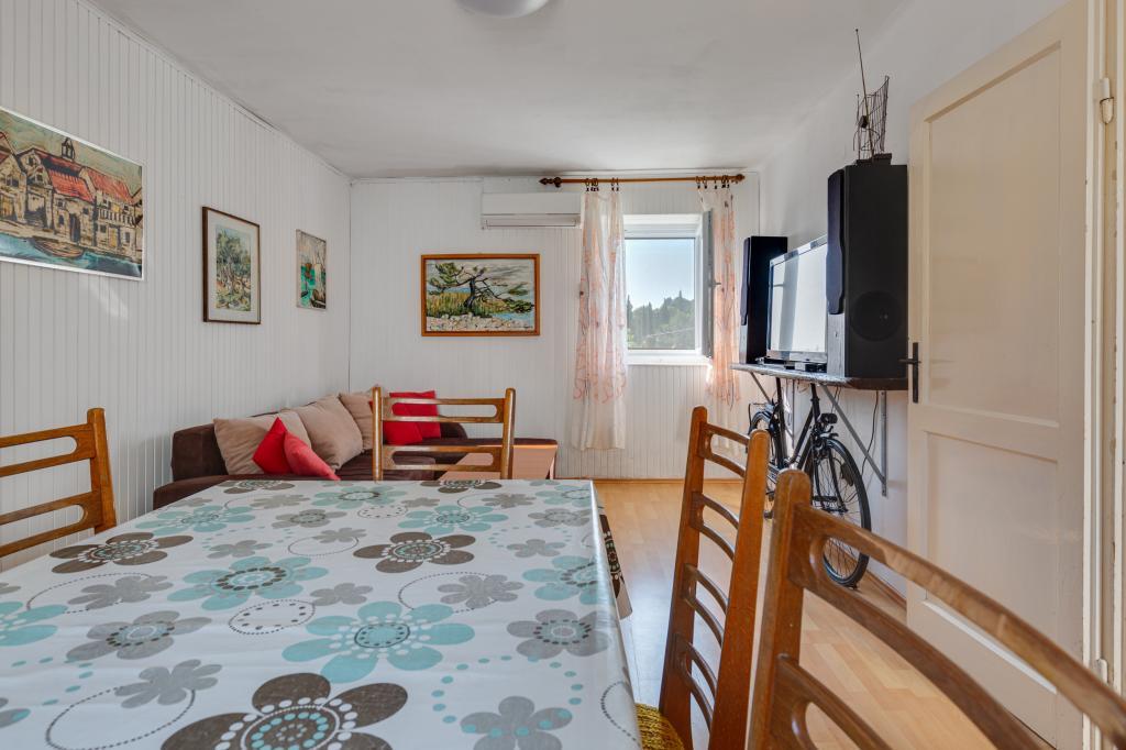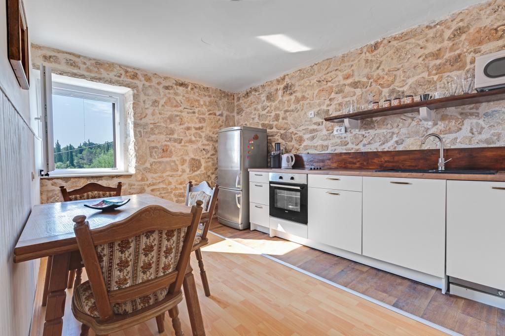 Očarljiva, zgodovinska kamnita hiša, stara 150 let, se nahaja na otoku Ugljan v mirnem kraju. S čudovitim pogledom na morje ta stara kamnita hiša nudi miren pobeg. Doživite popolno mešanico rustikalnega šarma in udobja z udobnimi sobami, dobro opremljeno kuhinjo in prostorno teraso za uživanje v slikoviti okolici. Potopite se v lepoto narave, raziščite raznolike plaže in ustvarite nepozabne spomine v tej idilični stari kamniti hiši.