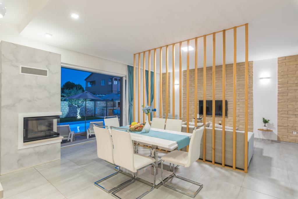 Sama vila navdušuje s svojim modernim videzom znotraj in zunaj, vsak detajl pa izžareva zavidljivo dozo luksuza. Kombinacija tradicionalnih in modernih materialov (kamen, les in steklo) daje potrebno toplo intimno vzdušje, detajli, kot je kamin ali letna kuhinja z bazenom, pa ta vtis le še povečajo. Vila Selest vsebuje prostorno dnevno sobo, osvetljeno z dnevno svetlobo zaradi velikih steklenih sten, dve spalnici s TV in tri kopalnice. Za prijetno bivanje v vseh vremenskih razmerah bodo poskrbele klimatske naprave in talno ogrevanje v vseh prostorih, za dodatno varnost pa je treba poudariti, da ima objekt Wi-Fi signal in video nadzor. Posest Vile Selest v Šverkih se nahaja v pravljični pokrajini, kjer lahko z očmi vidite oddaljene Alpe, hkrati pa zavohate morje in se hkrati v popolnem miru prepustite vsem čarom istrske narave. in tiho.